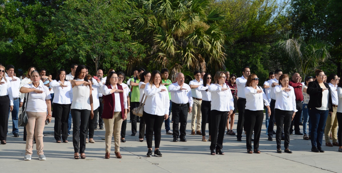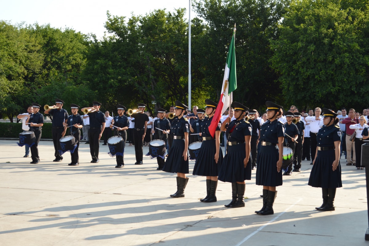 En la Ceremonia Cívica de Honores a nuestra Bandera, se reconoció y felicitó a los integrantes de la Banda de Guerra y a la Escolta de Bandera “Lobos”, de la Escuela Secundaria General Número 7 “Eleazar Cervantes Gómez”, quienes obtuvieron el Tercer Lugar en el Concurso de Bandas de Guerra organizado por la Normal de Educadoras de Tamaulipas.
