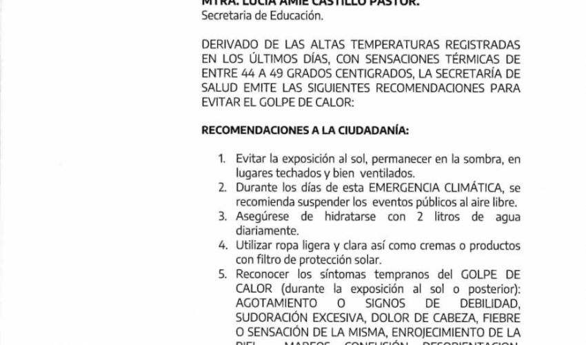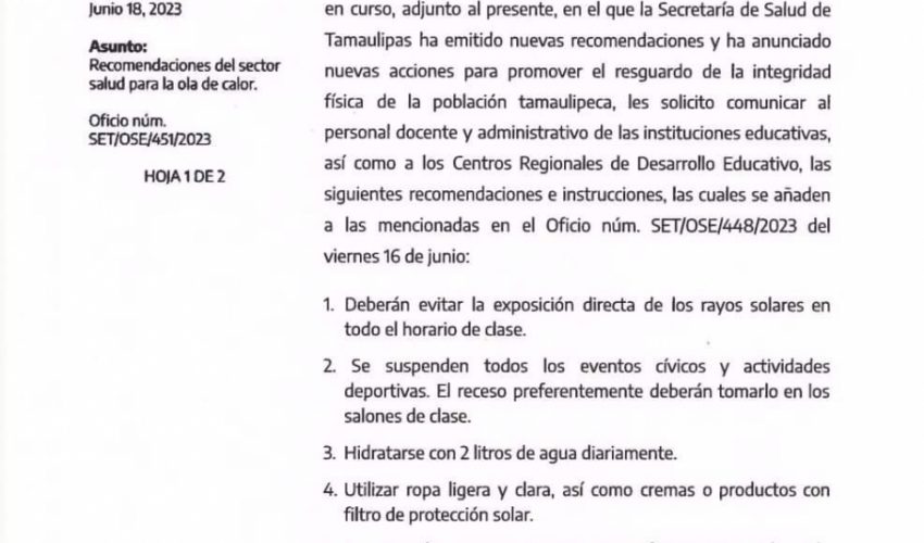 Ante las altas temperaturas que se registran en la entidad, la Secretaría de Salud de Tamaulipas nos mantiene informados con estos importantes datos: