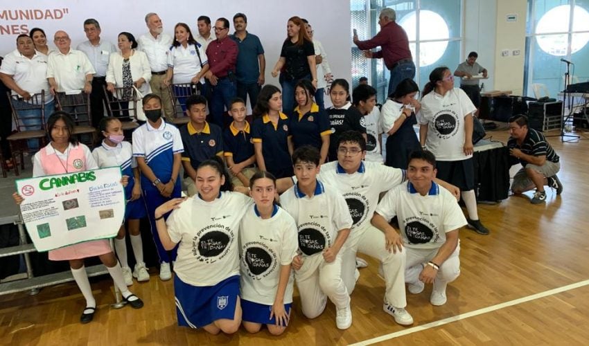 Las y los adolescentes de secundarias y jóvenes de nivel medio superior, impulsaron con su energía, trabajo de equipo y liderazgo el mensaje que advierte y hace tomar conciencia: Si te drogas, te dañas.