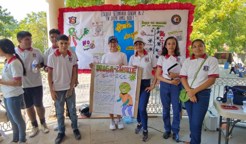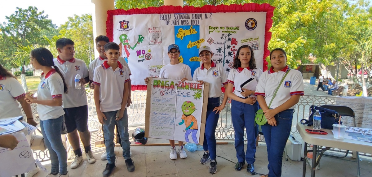 Las y los adolescentes de secundarias y jóvenes de nivel medio superior, impulsaron con su energía, trabajo de equipo y liderazgo el mensaje que advierte y hace tomar conciencia: Si te drogas, te dañas.