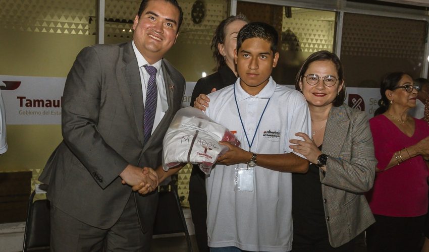La secretaria de Educación Lucía Aimé Castillo Pastor abanderó y entregó uniformes para la delegación estudiantil de nivel Básica y Media Superior de Tamaulipas, que participará en la Olimpiada Nacional de Matemáticas.