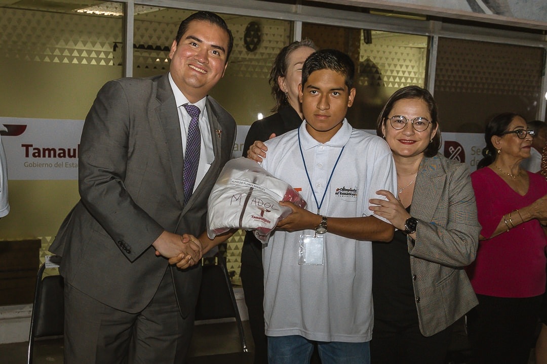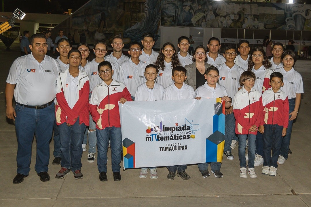 La secretaria de Educación Lucía Aimé Castillo Pastor abanderó y entregó uniformes para la delegación estudiantil de nivel Básica y Media Superior de Tamaulipas, que participará en la Olimpiada Nacional de Matemáticas.