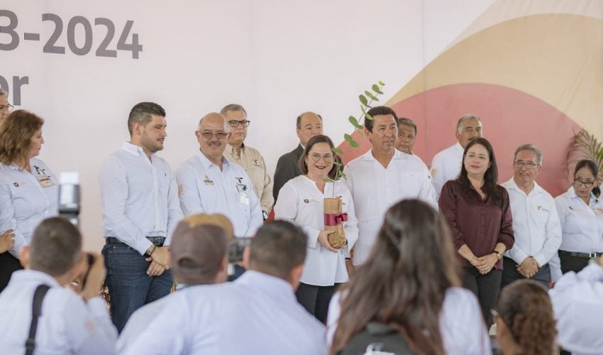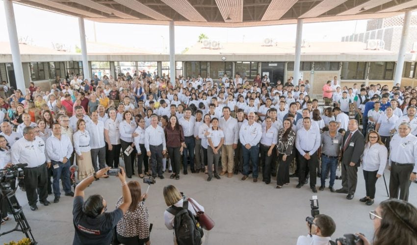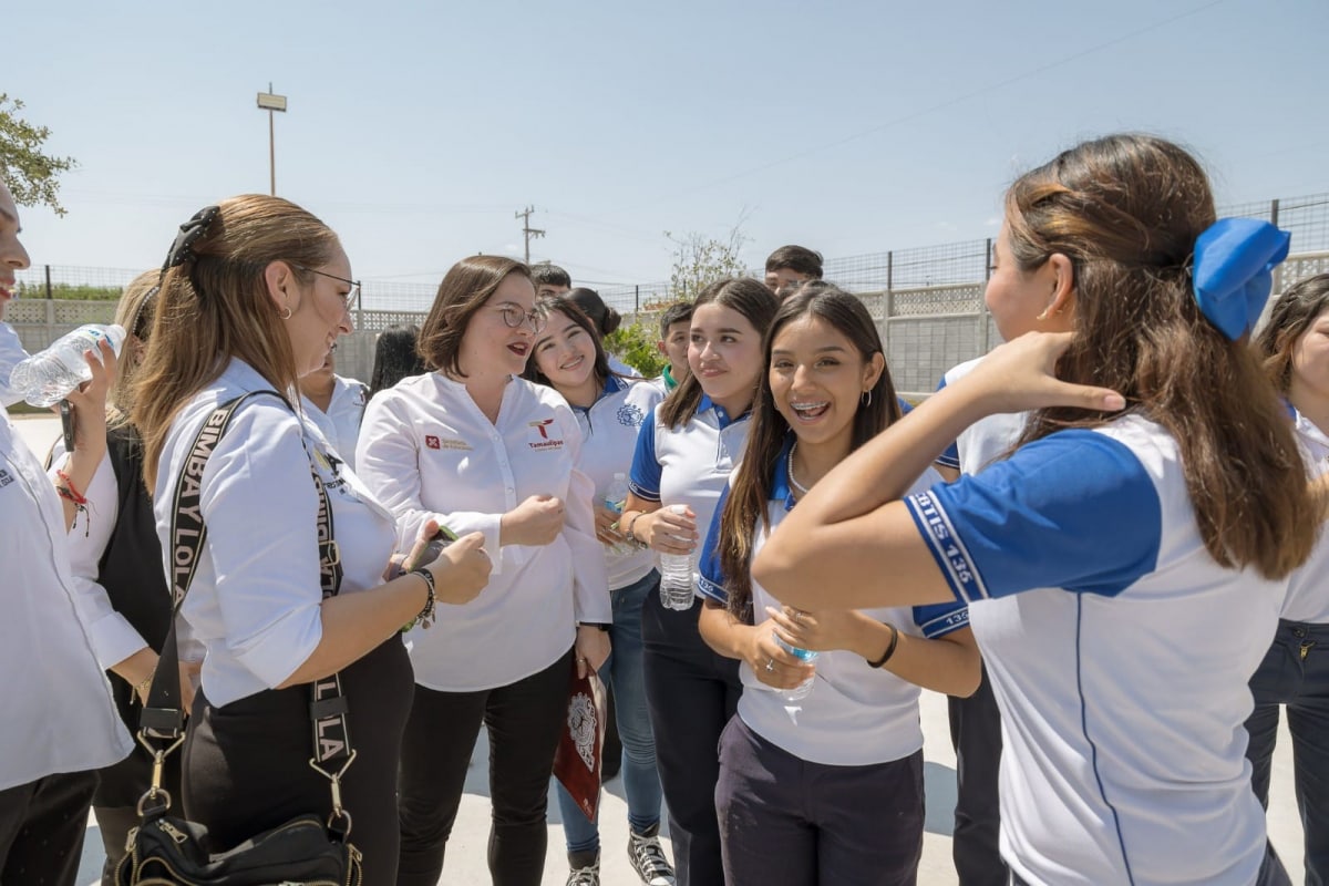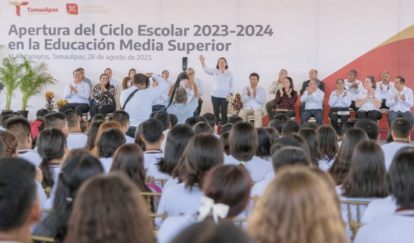 “Celebro grandemente que hoy estén aquí papás y mamás, porque queremos seguir haciendo equipo con ustedes, queremos conformar una sociedad fuerte, sólida y los necesitamos acompañando la tarea noble de cada maestra y maestro en las aulas”, así lo dijo la Secretaria de Educación de Tamaulipas (SET), Lucía Aimé Castillo Pastor, durante el evento Apertura del Ciclo Escolar 2023-2024 en la Educación Media Superior, llevado a cabo en el Colegio de Bachilleres de Tamaulipas (COBAT) Nueva Creación, en Matamoros.