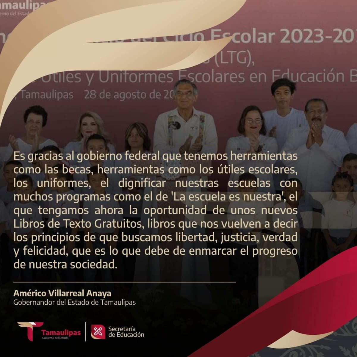 Hoy iniciamos el ciclo escolar 2023-2024; en Tamaulipas sin educación no hay transformación.