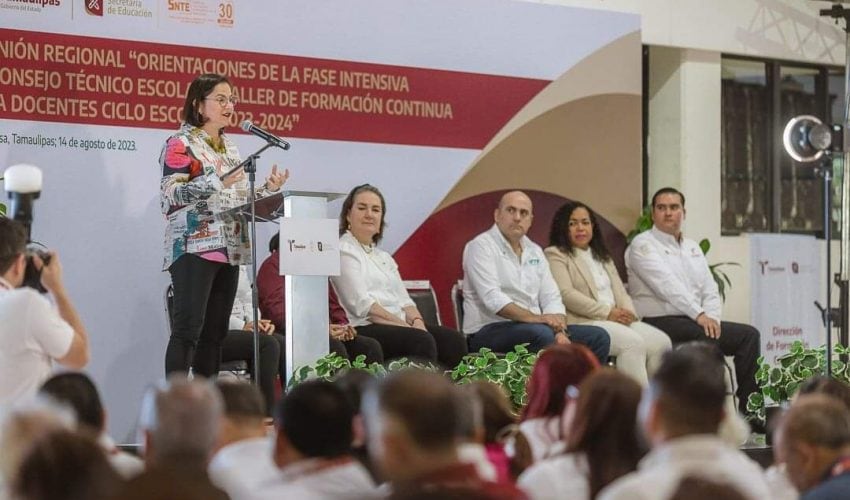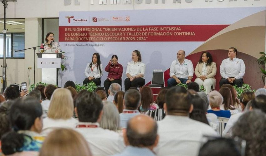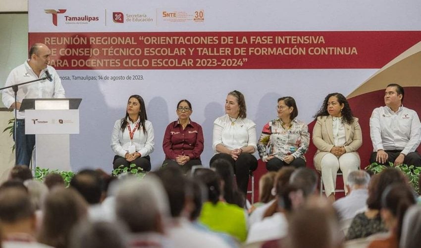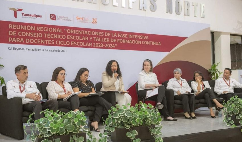 Se realiza la reunión regional “Orientaciones de la Fase Intensiva de Consejo Técnico Escolar y Taller de Formación Continua para Docentes”, en Reynosa con la presencia de la secretaria de Educación en la entidad, Lucía Aimé Castillo Pastor y la participación de jefas y jefes de sector, supervisoras y supervisores escolares, coordinadoras y coordinadores de sede de inglés y de centros de maestros de nivel de educación básica del norte de Tamaulipas.
