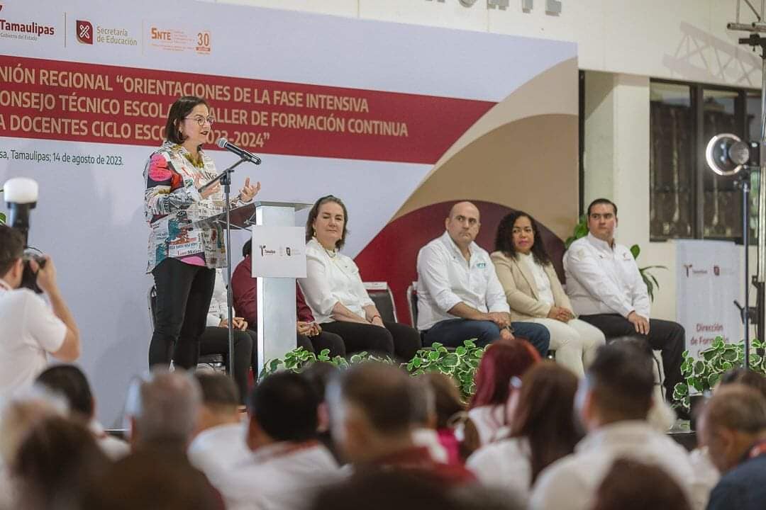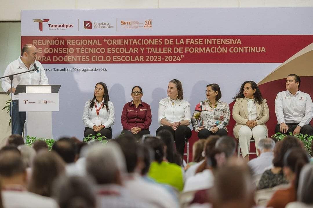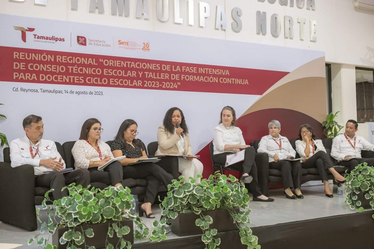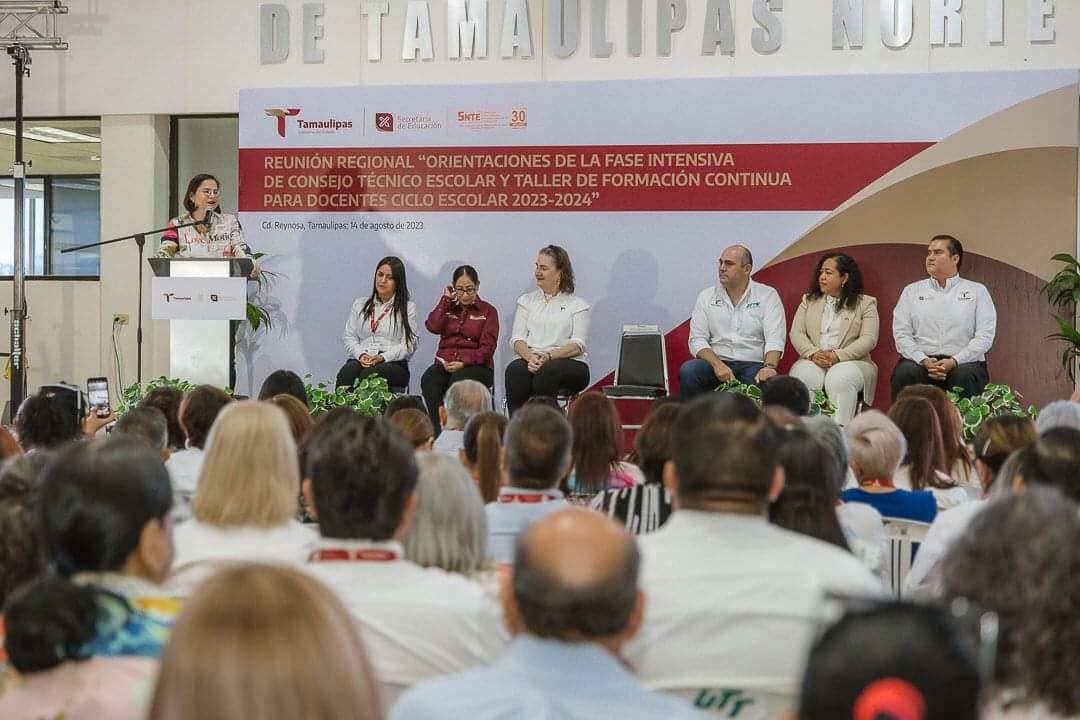 Se realiza la reunión regional “Orientaciones de la Fase Intensiva de Consejo Técnico Escolar y Taller de Formación Continua para Docentes”, en Reynosa con la presencia de la secretaria de Educación en la entidad, Lucía Aimé Castillo Pastor y la participación de jefas y jefes de sector, supervisoras y supervisores escolares, coordinadoras y coordinadores de sede de inglés y de centros de maestros de nivel de educación básica del norte de Tamaulipas.