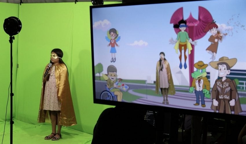 Las niñas y los niños podrán hacer cápsulas con las y los superheroínas y superhéroes en una cabina de televisión y también podrán disfrazarse de ellas y ellos virtualmente.