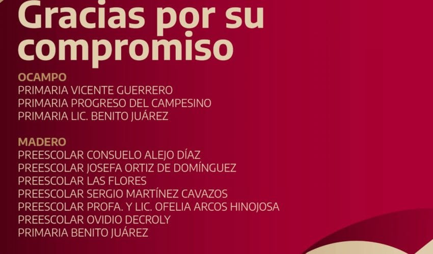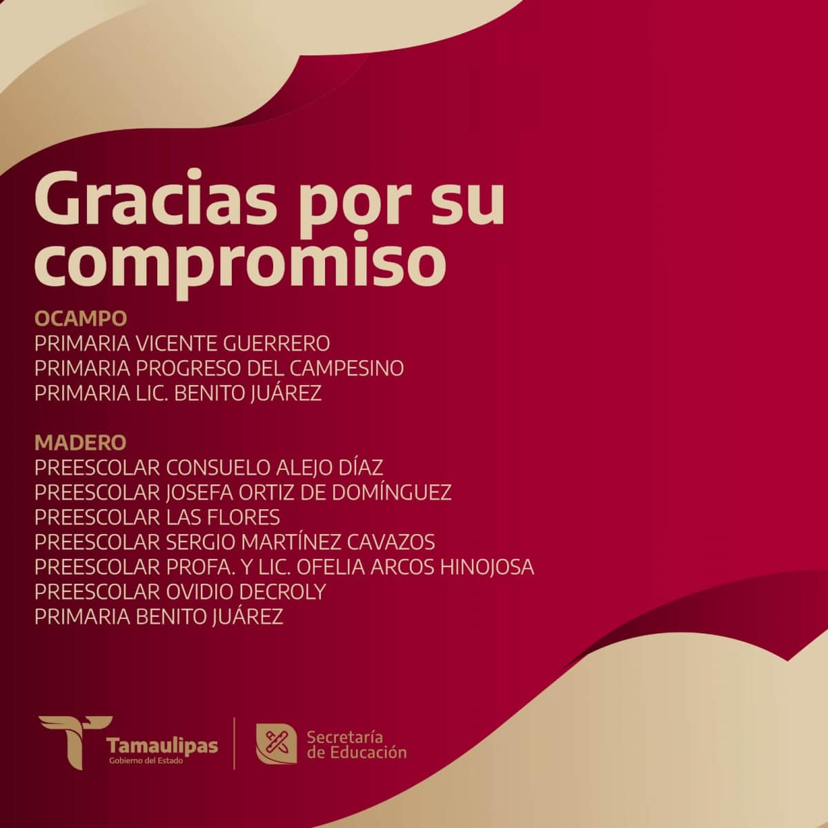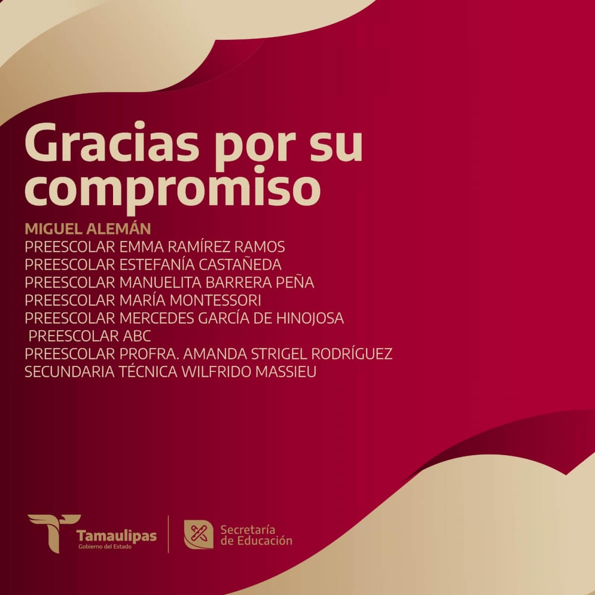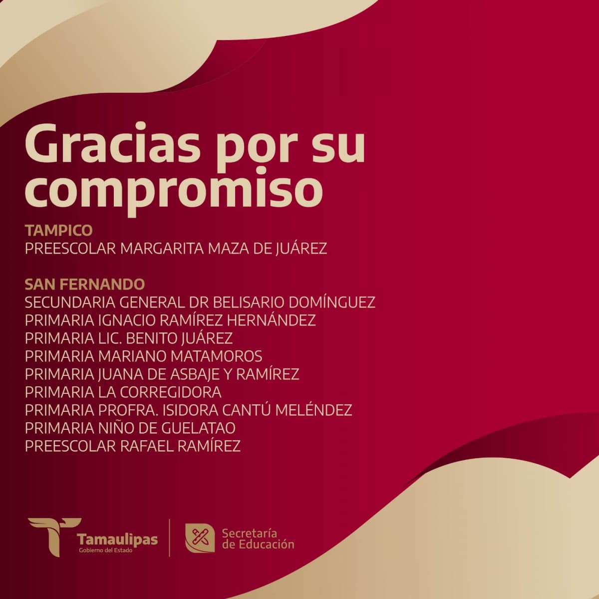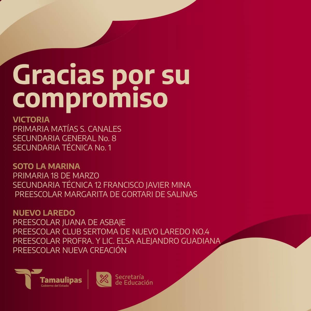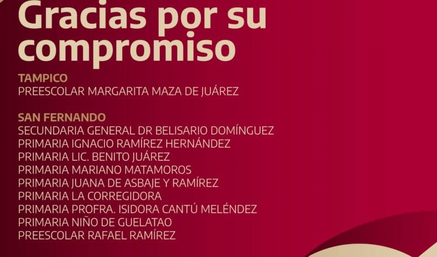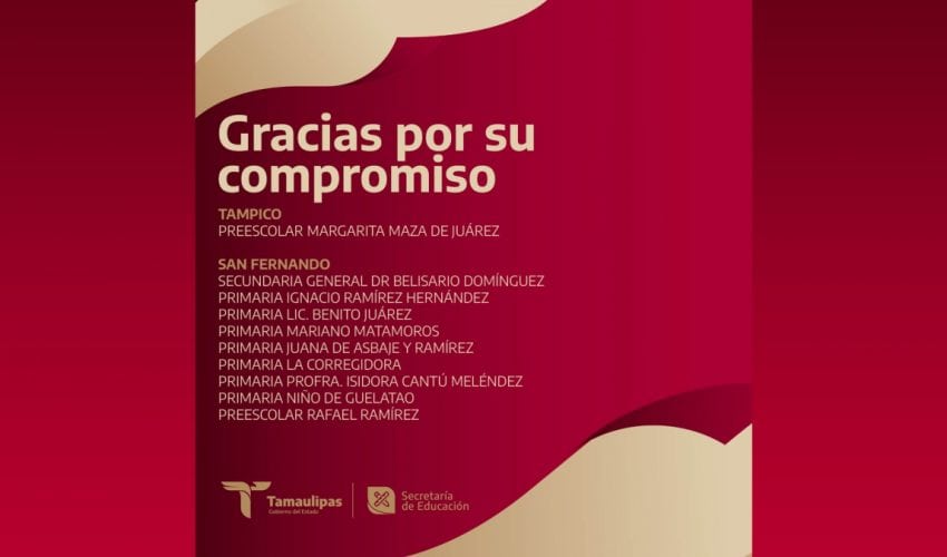 Arrancamos la semana y hoy 18 de septiembre damos justo reconocimiento a las escuelas comprometidas en garantizar el derecho de todas las niñas y los niños de Tamaulipas a tener acceso a la educación universal, pública, gratuita, inclusiva y laica, tal como lo dispone nuestra Constitución. Te compartimos el segundo bloque de las instituciones que hoy prestaron servicio educativo.