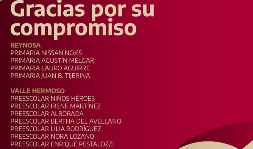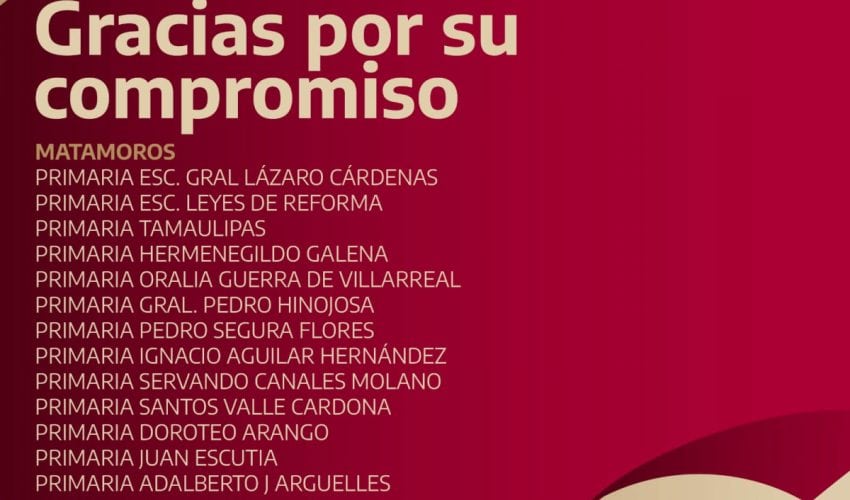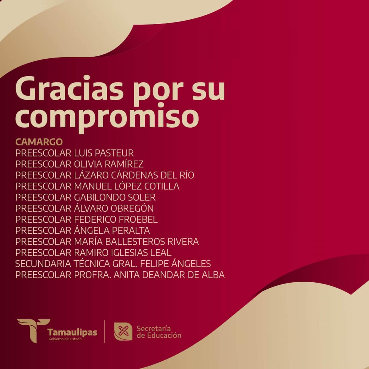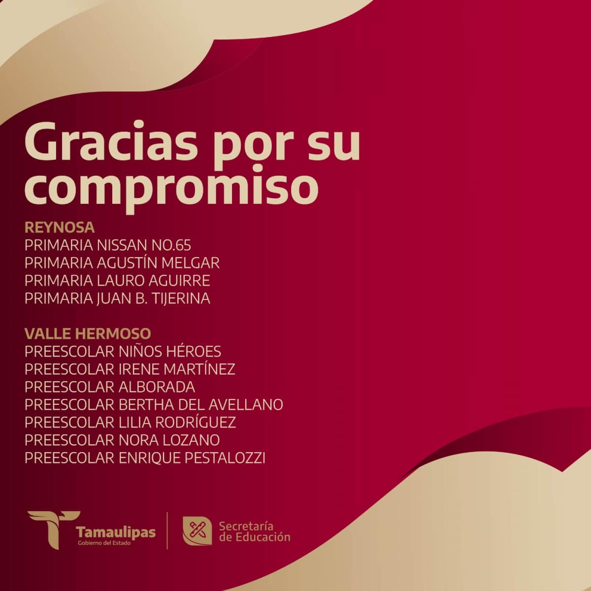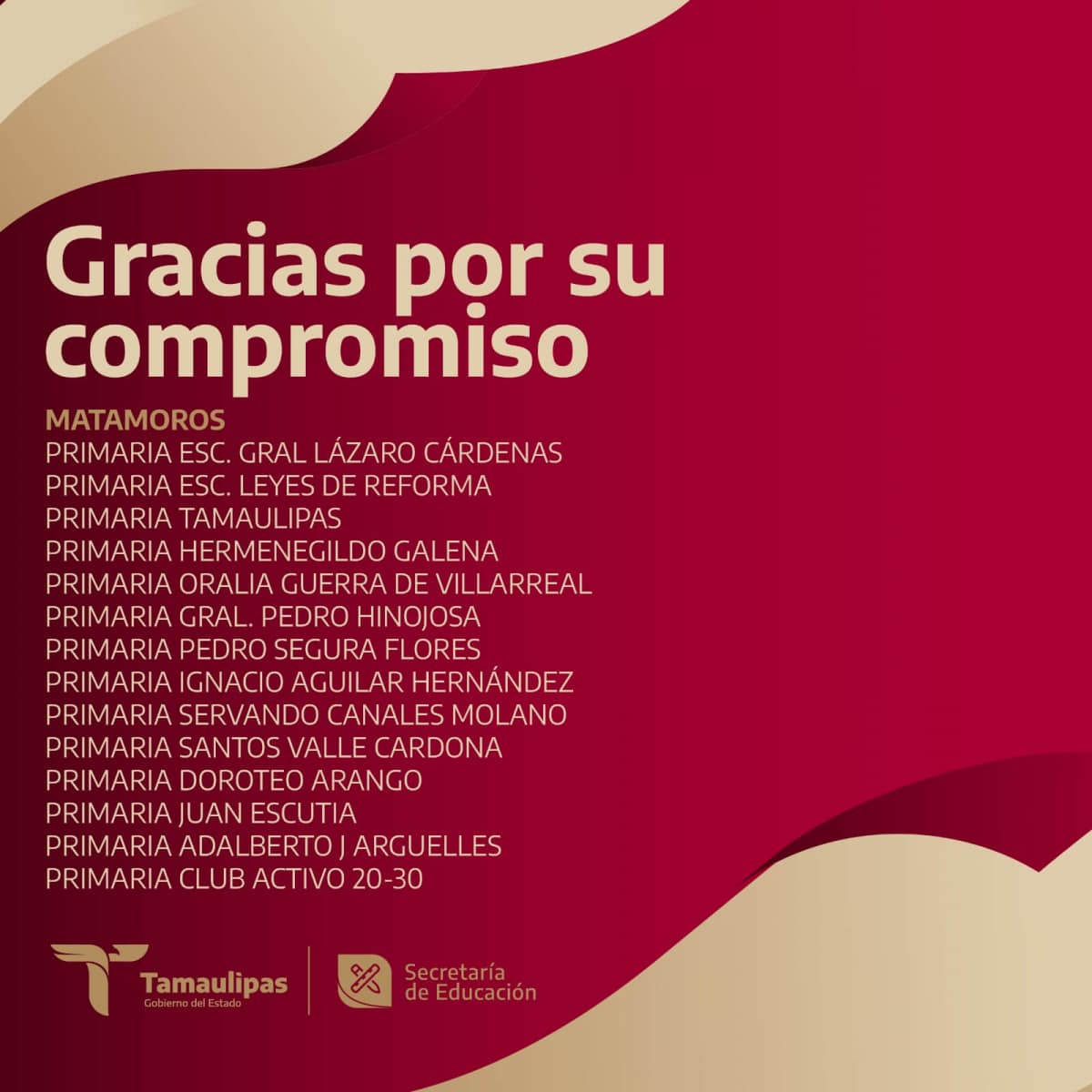 Arrancamos la semana y hoy 18 de septiembre damos justo reconocimiento a las escuelas comprometidas en garantizar el derecho de todas las niñas y los niños de Tamaulipas a tener acceso a la educación universal, pública, gratuita, inclusiva y laica, tal como lo dispone nuestra Constitución. Te compartimos este el bloque de las instituciones que hoy prestaron servicio educativo.