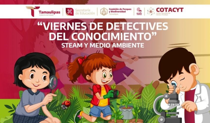 La Secretaría de Educación de Tamaulipas a través de la Dirección de Programas Transversales y el Programa Enseñanza Vivencial de las Ciencias de la Subsecretaría de Educación Básica, en colaboración con el Museo de Historia Natural de Tamaulipas (Museo TAMUX) de la Comisión de Parques y Biodiversidad, el Consejo Tamaulipeco de Ciencia y Tecnología, e instituciones aliadas del Territorio STEAM Tamaulipas, convocan a niñas y niños de 6 a 12 años a participar en “Detectives del Conocimiento STEAM y Medio Ambiente”, los viernes en que las y los maestros de educación básica lleven a cabo las sesiones de Consejo Técnico Escolar.