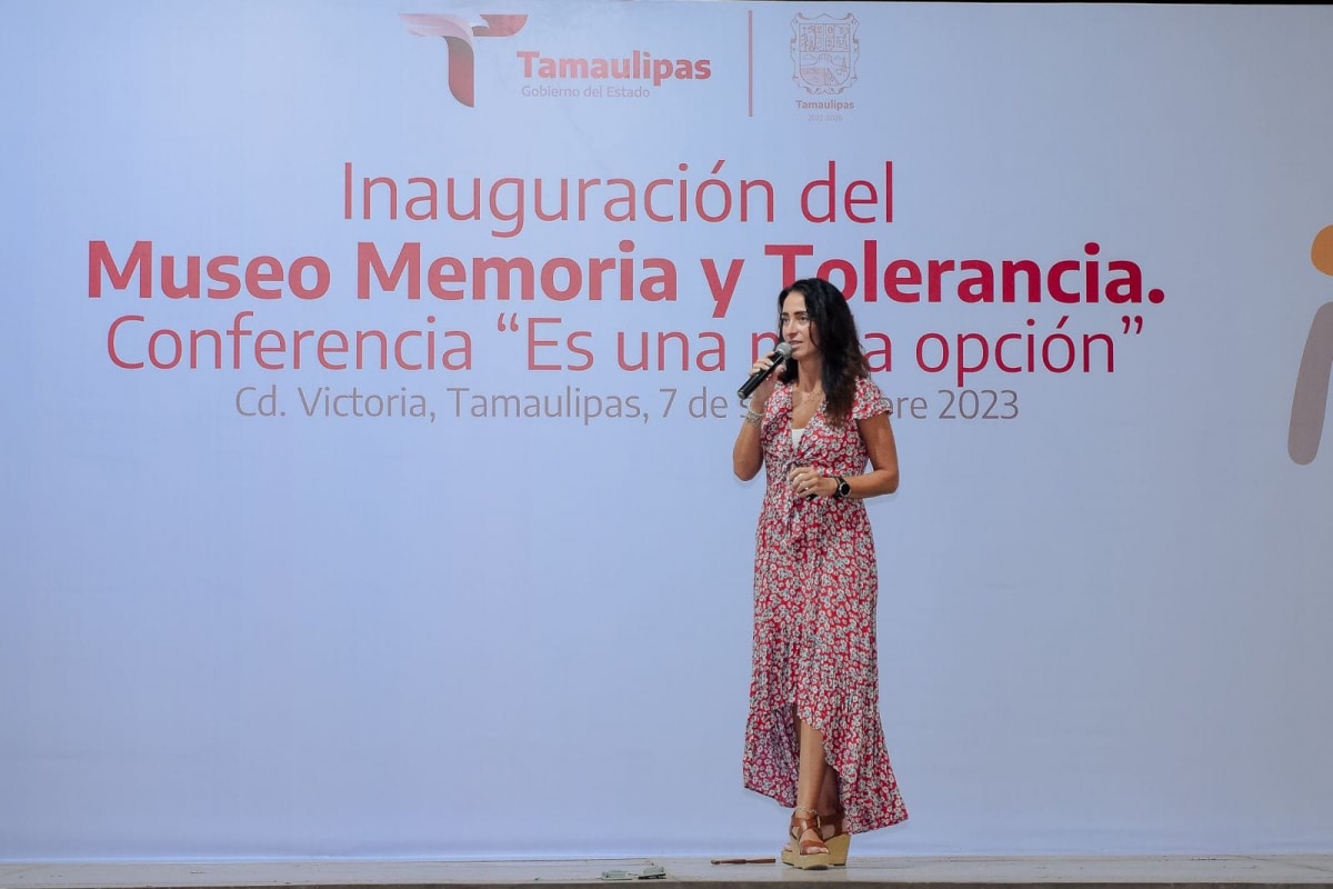 Dentro de las actividades de inauguración, la Maestra en Sociología y directora de Relaciones Institucionales y Gobierno del Museo Memoria y Tolerancia, Pola Salmún Smeke, llevó a cabo la conferencia ‘Discriminar es una mala opción’, siendo atendida por todas y todos los presentes.