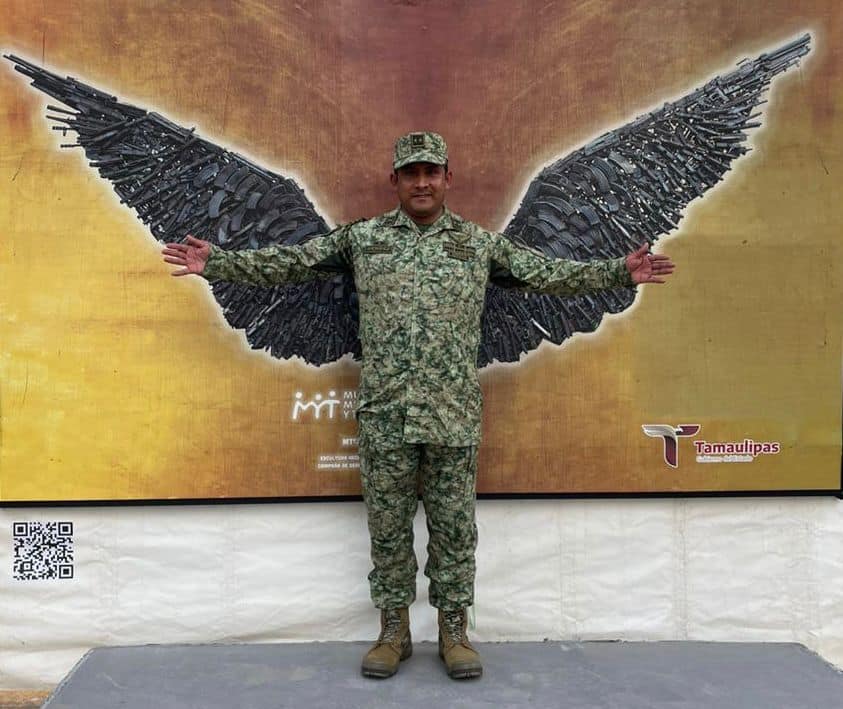 Ven y tómate la foto con las Alas de la Paz de Jorge Marín hechas con material de desarme. Súmate a vivir en bienestar.