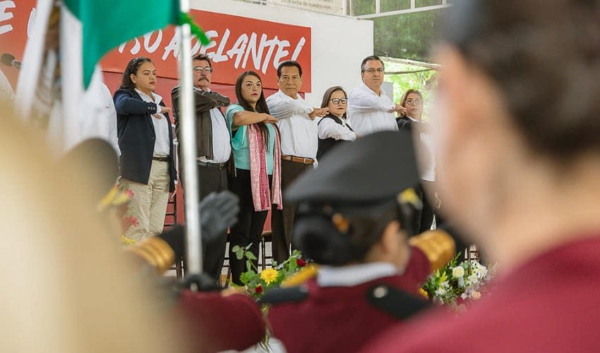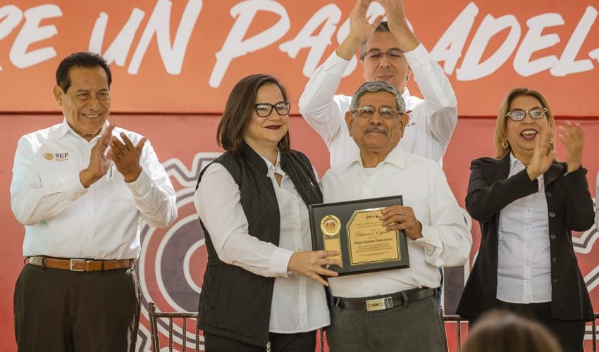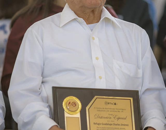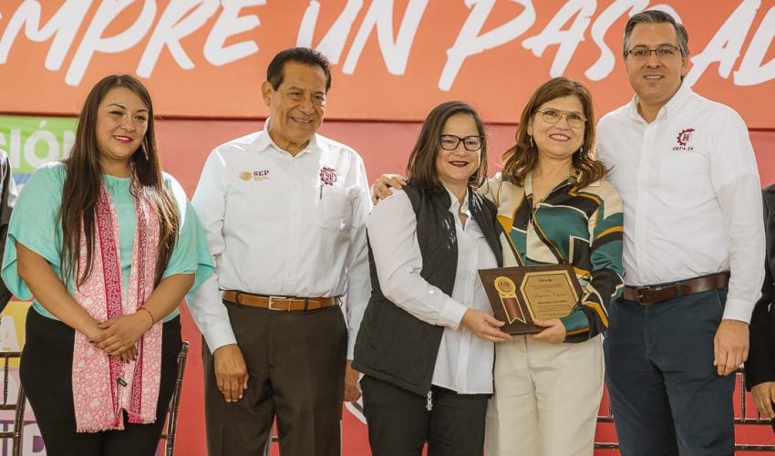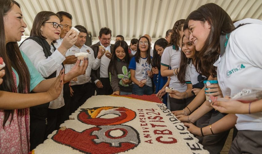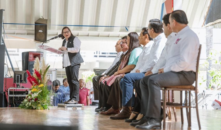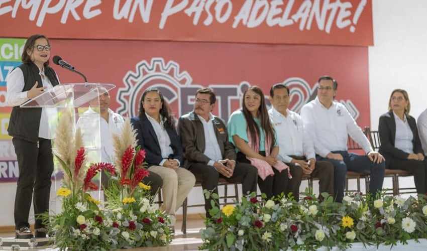 La titular de la SET invitó a las y los jóvenes a continuar el legado de su escuela, el CBTis 24, y que dentro de algunos años, al ser madres, padres, tías, tíos, abuelas y abuelos de los jóvenes que ahí estudien, les recuerden con orgullo sus años de estudiantes en este plantel.