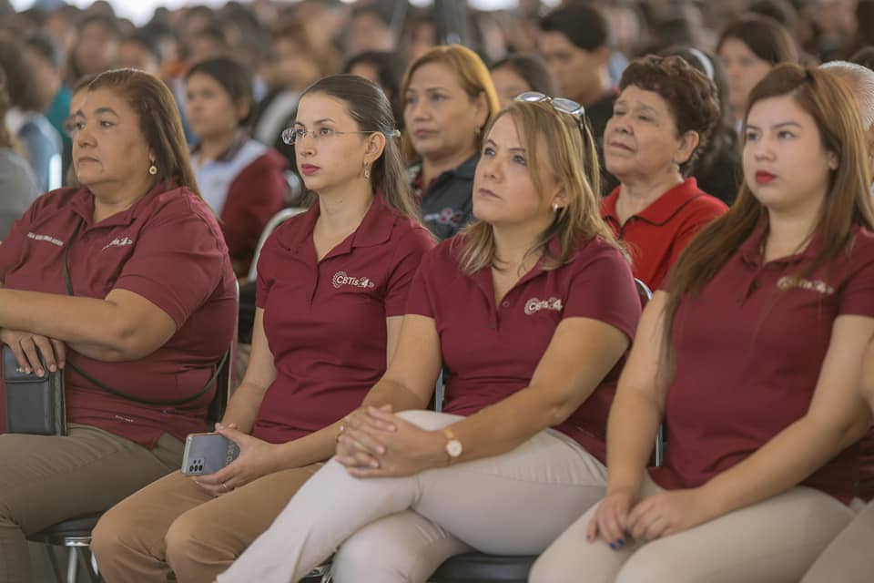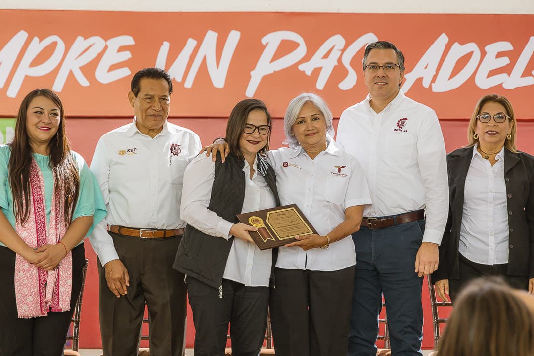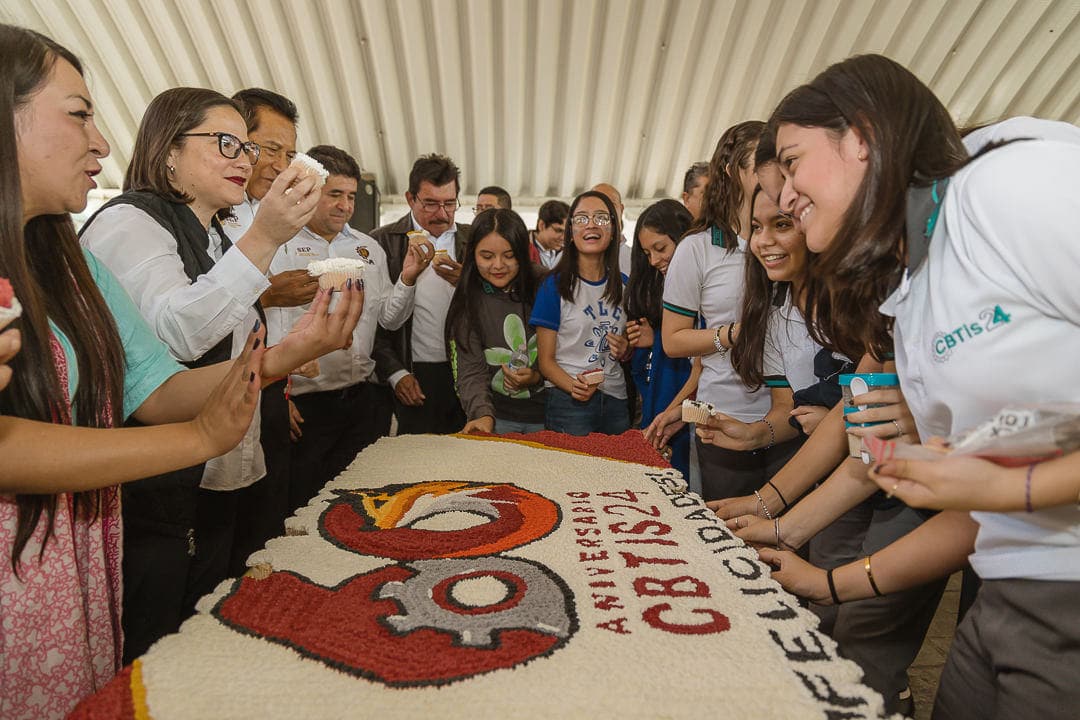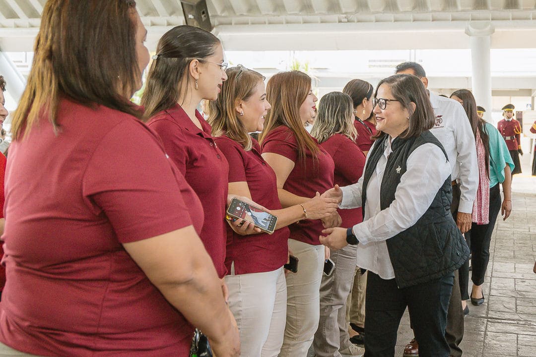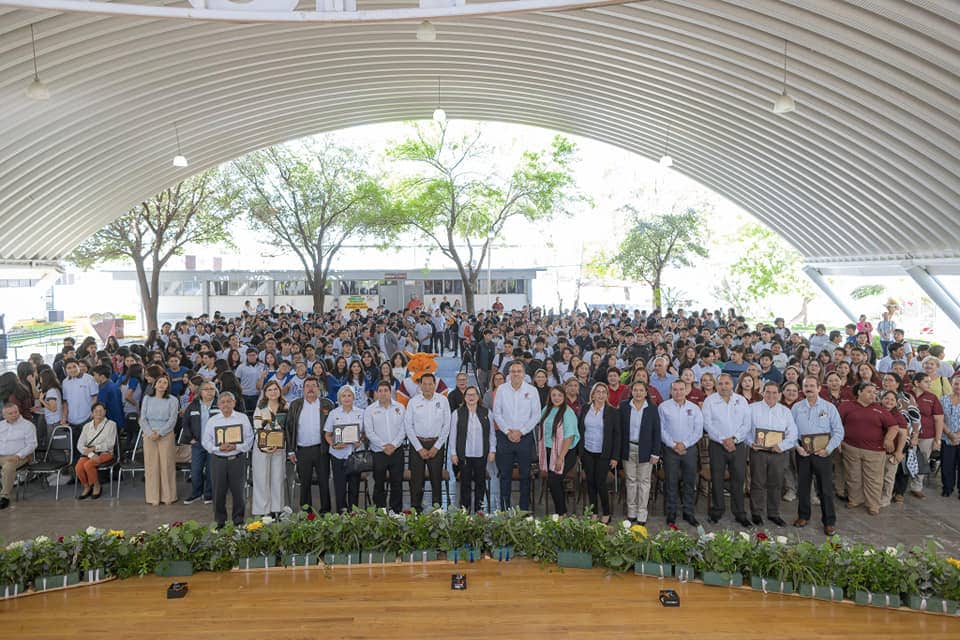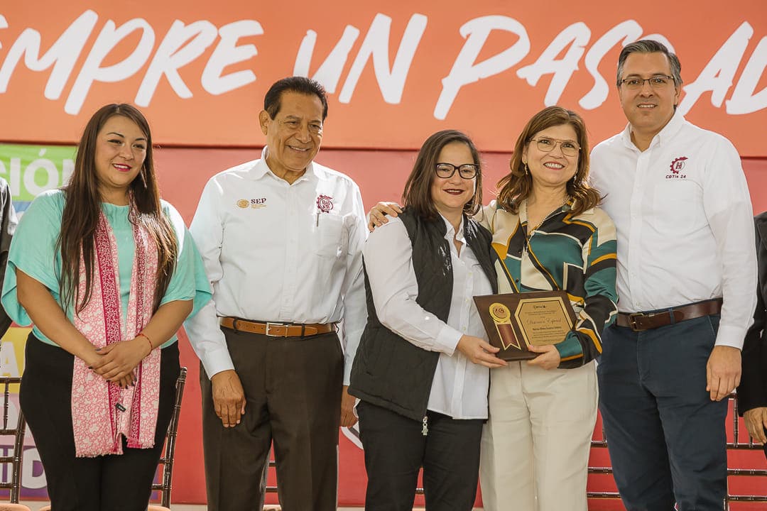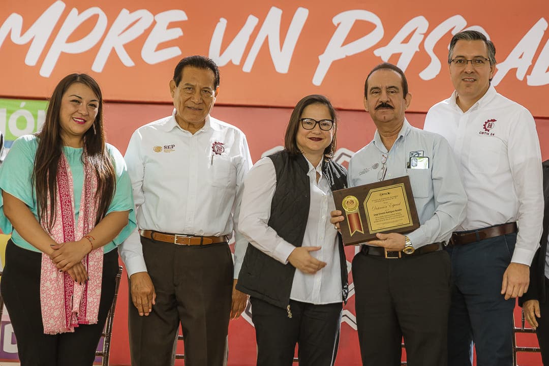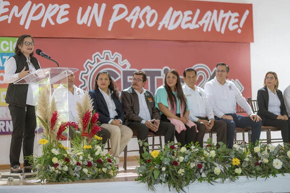 La titular de la SET invitó a las y los jóvenes a continuar el legado de su escuela, el CBTis 24, y que dentro de algunos años, al ser madres, padres, tías, tíos, abuelas y abuelos de los jóvenes que ahí estudien, les recuerden con orgullo sus años de estudiantes en este plantel.
