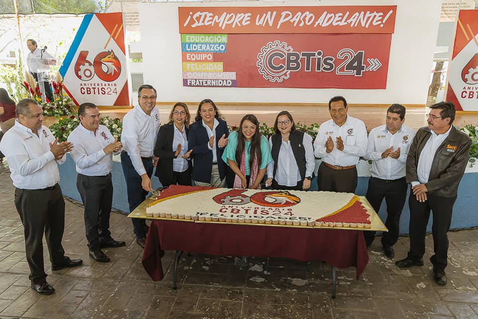 En representación del gobernador Américo Villarreal Anaya, la secretaria de Educación de Tamaulipas (SET), Lucía Aimé Castillo Pastor, asistió a la celebración del 60 aniversario del Centro de Bachillerato Tecnológico Industrial y de Servicios (CBTis) Número 24 de Ciudad Victoria, donde convivió con estudiantes y docentes del plantel.
