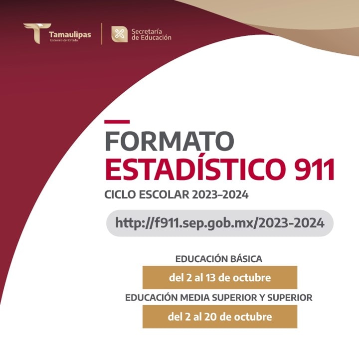 Apertura del llenado del Formato Estadístico 911, Ciclo Escolar 2023-2024, los datos proporcionados son de gran utilidad para el desarrollo de indicadores educativos para fortalecer los procesos de planeación, administración y evaluación del Sistema Educativo Estatal.