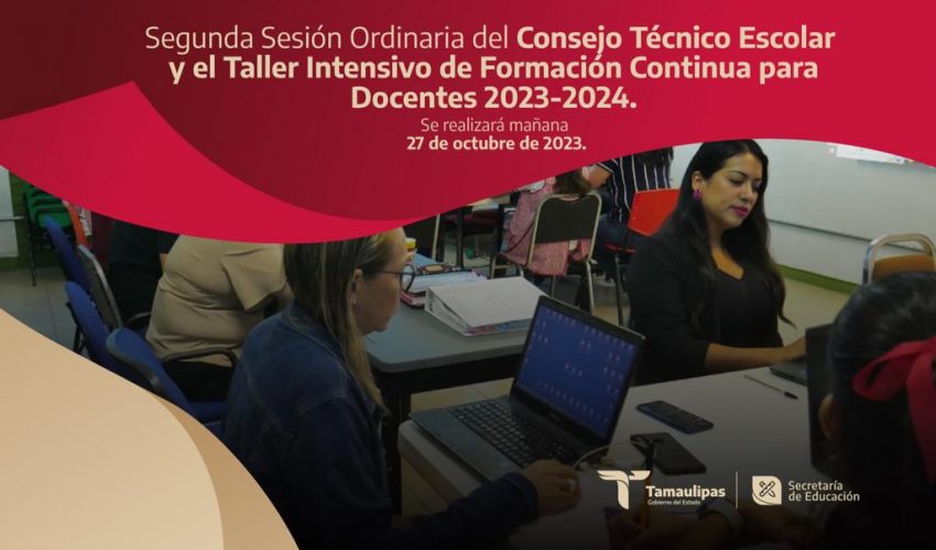 Se realizará la Segunda Sesión Ordinaria del Consejo Técnico Escolar y el Taller Intensivo de Formación Continua para Docentes