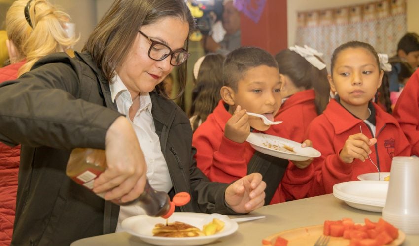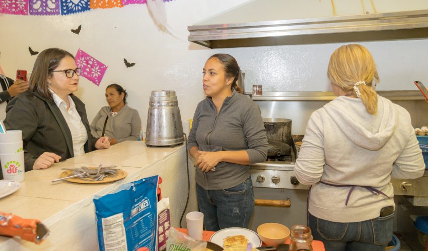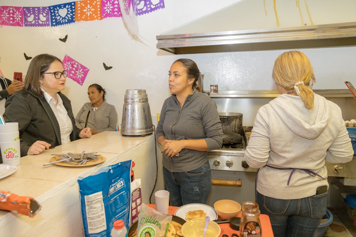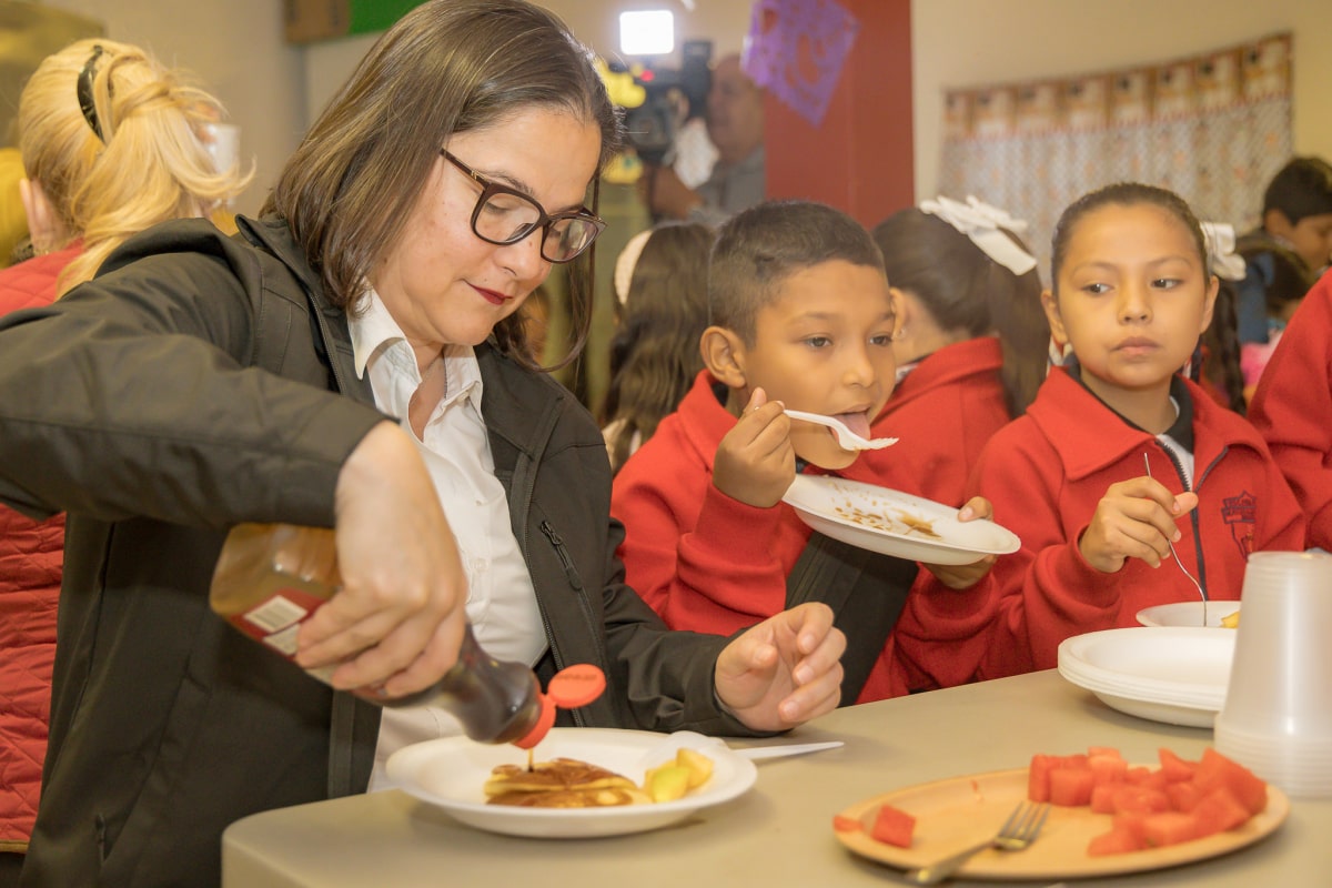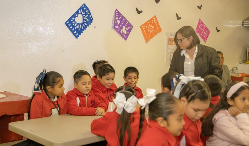 Durante su recorrido por las aulas, la titular de la SET participó en las actividades educativas junto a las niñas y niños del plantel, los acompañó en su desayuno e hizo un trayecto por las distintas áreas de la escuela.