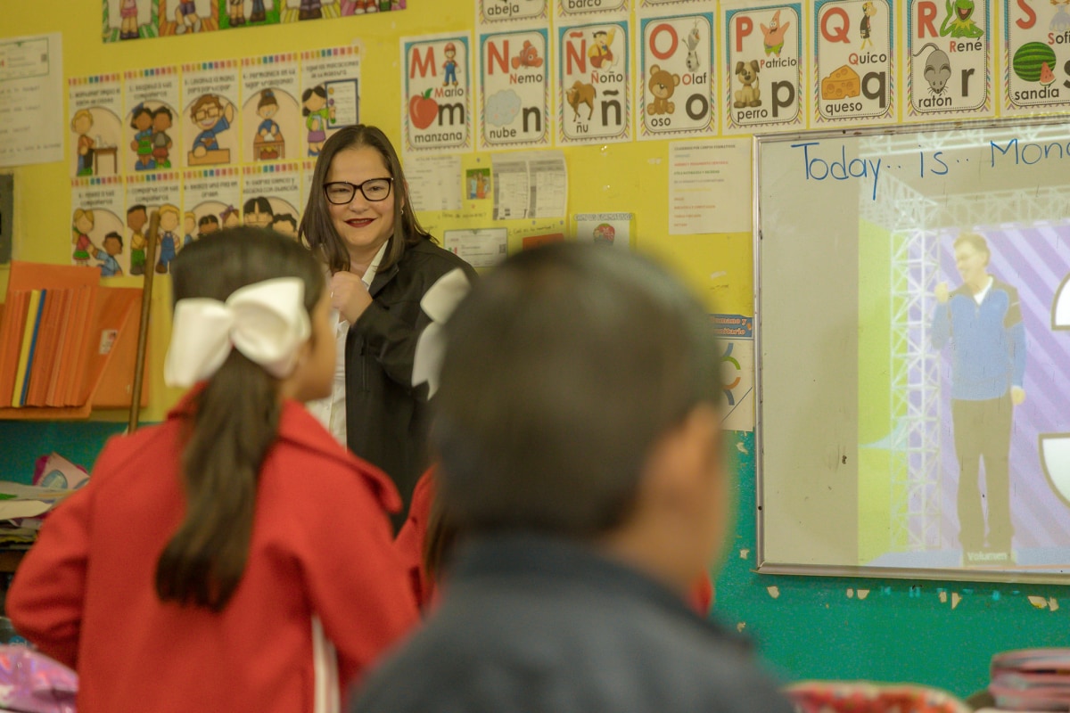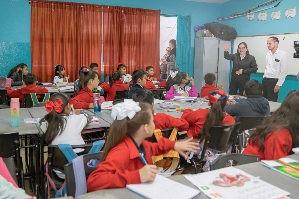 Este lunes, la secretaria de Educación de Tamaulipas, Lucía Aimé Castillo Pastor, visitó la Escuela Primaria “Matias S. Canales”, de la colonia Tamatán, en ciudad Victoria, donde convivió con estudiantes, docentes, madres y padres de familia de la institución, con quienes dialogó e intercambió experiencias y opiniones que contribuyan a mejorar y consolidar la transformación del sector educativo en favor de la niñez tamaulipeca.