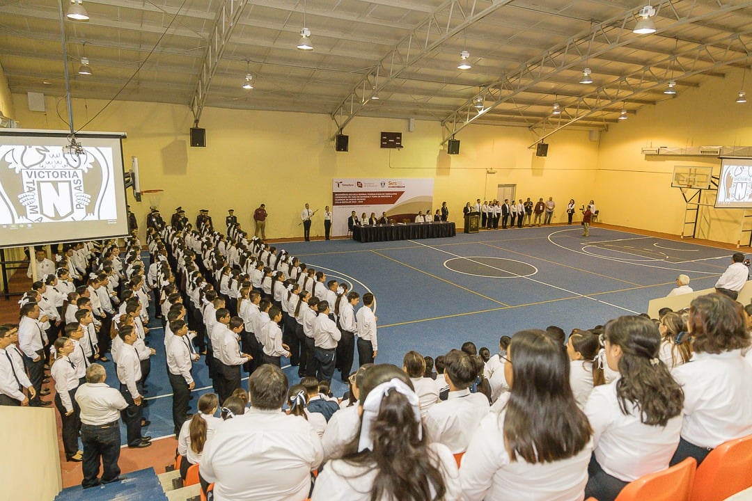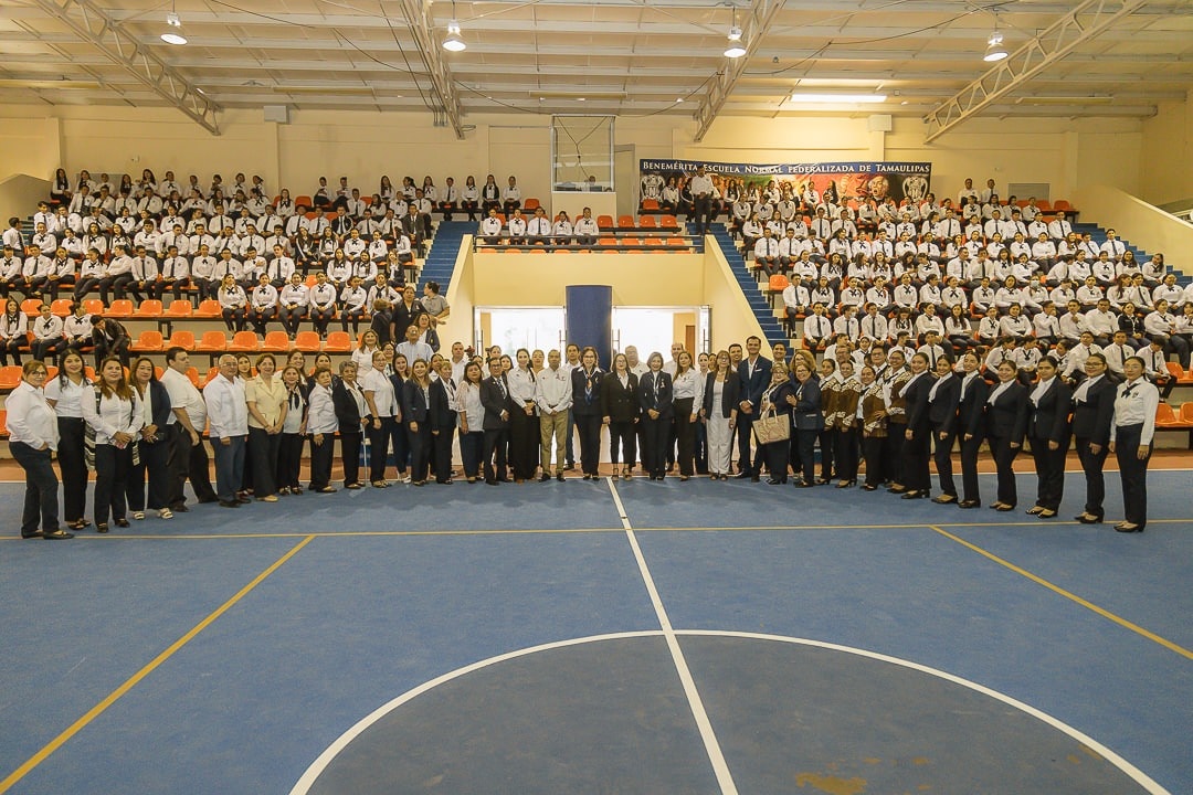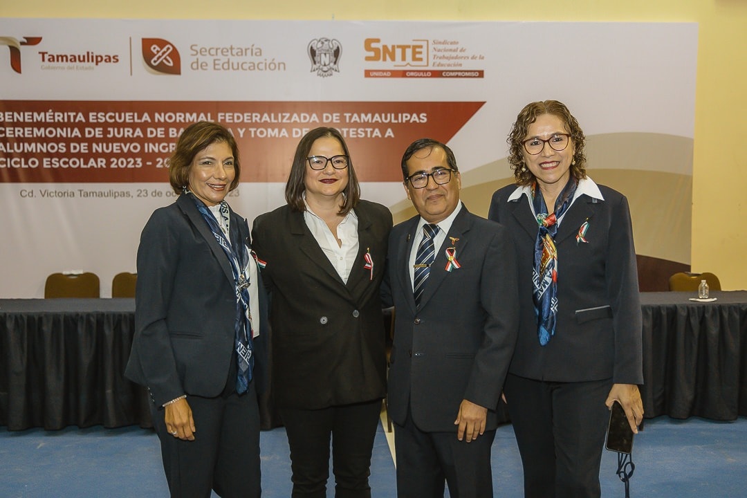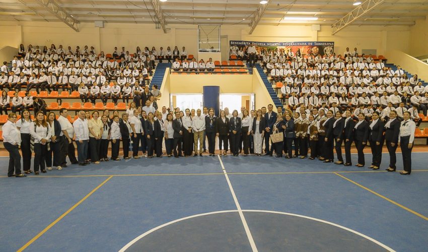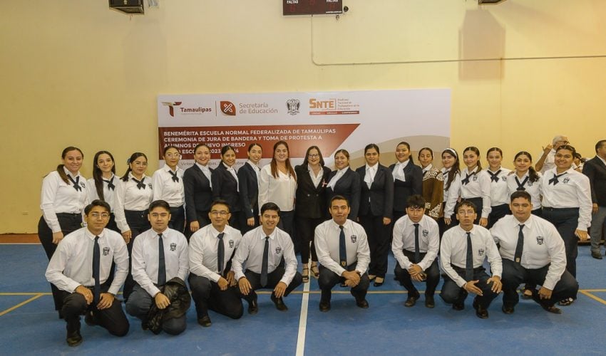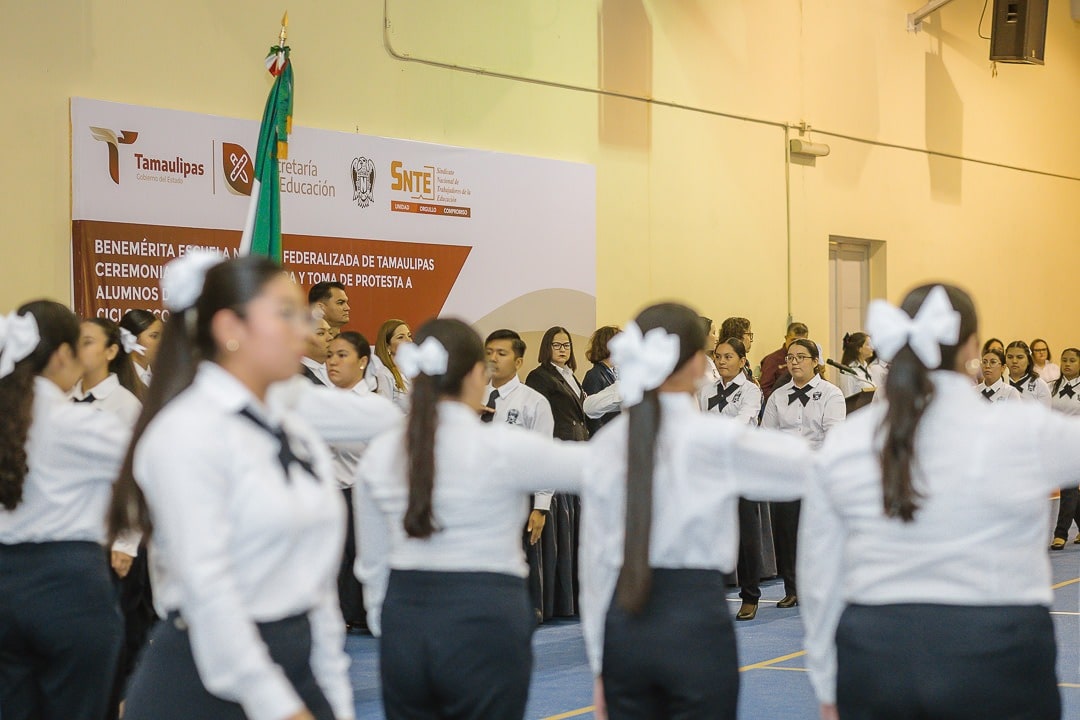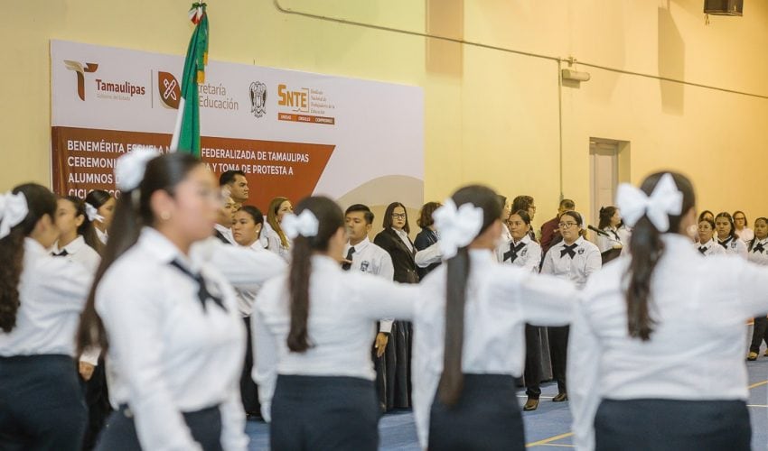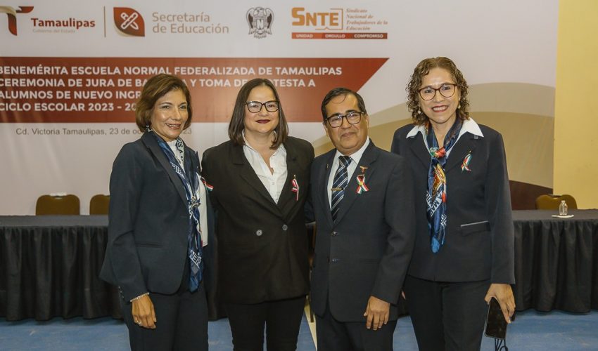 Este lunes la secretaria de Educación de Tamaulipas, Lucía Aimé Castillo Pastor, presidió la ceremonia de Honores a la Bandera efectuada en la Benemérita Escuela Normal Federalizada de Tamaulipas, en ciudad Victoria; durante el evento, acompañada de la Dra. Nora Imelda González Salazar, Directora de la Escuela Normal, se llevó a cabo la Toma de Protesta de las y los estudiantes de nuevo ingreso a las Licenciaturas en Educación Primaria e Inclusión Educativa.