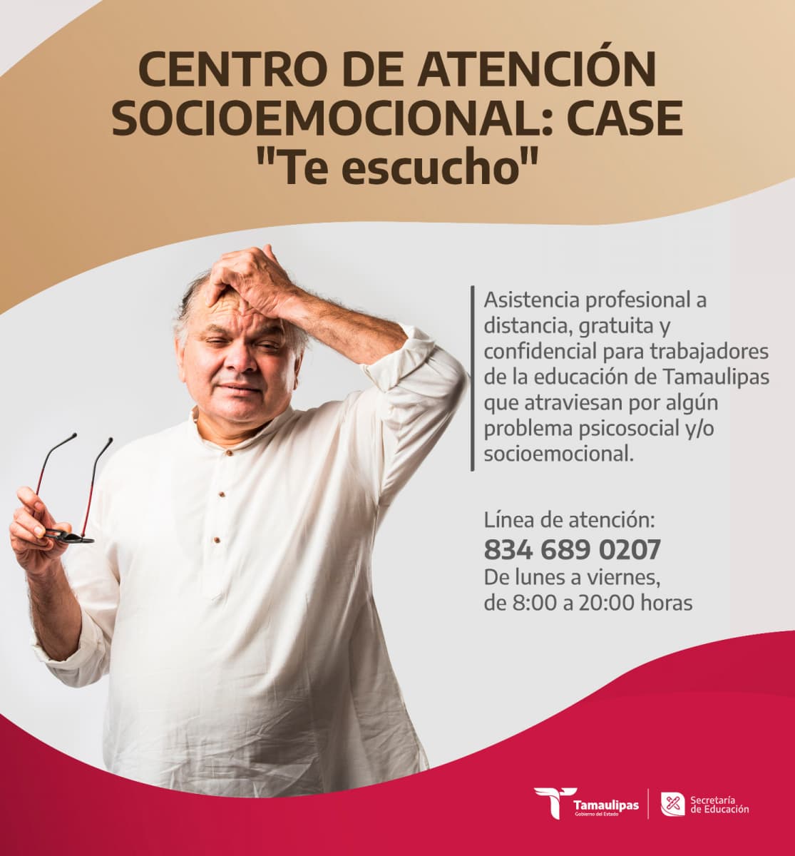 Se pone a disposición de los trabajadores de la educación de Tamaulipas el Centro de Atención Socioemocional: CASE “Te escucho”, que brinda servicios a distancia en caso de problemas emocionales y psicosociales.