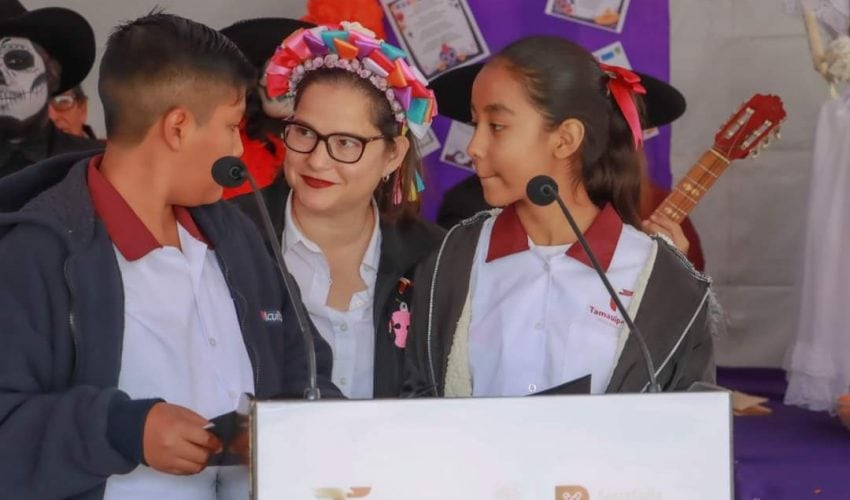 Como parte de las acciones que impulsa la administración estatal que dirige el gobernador Américo Villarreal Anaya, que fomentan y preservan nuestras tradiciones mexicanas, se instaló el Altar de Muertos en la explanada de la Secretaría de Educación de Tamaulipas (SET), donde participaron en la ceremonia estudiantes de la Telesecundaria “José Vasconcelos”, del ejido Santa Ana de Nahola del municipio de Tula, con su grupo de danza autóctona “Pisones de Nahola”, en el marco de la celebración del Día de Muertos.