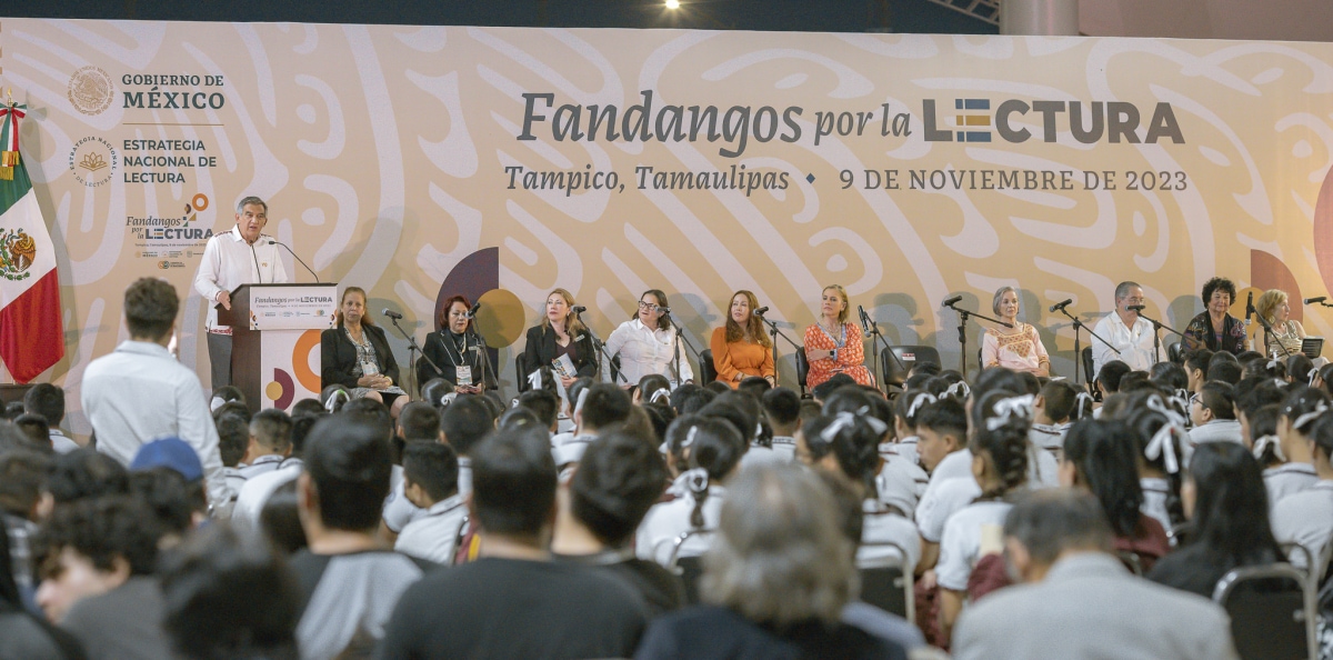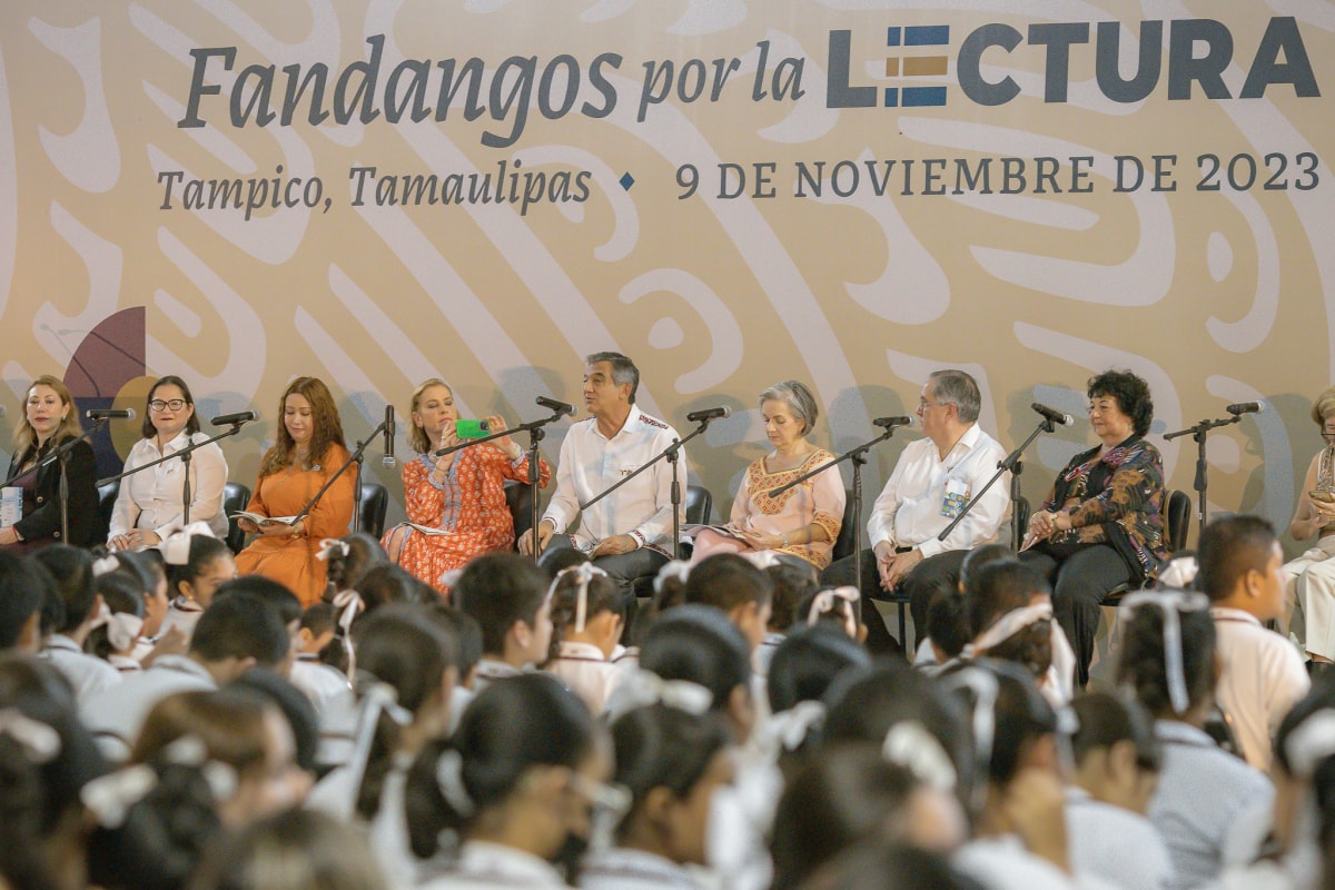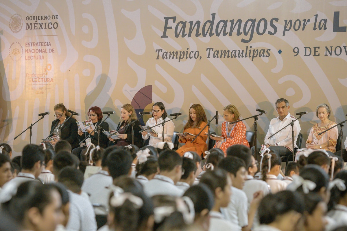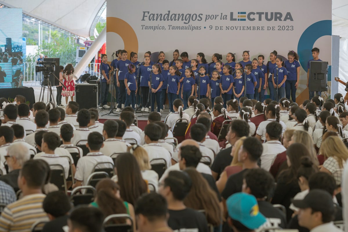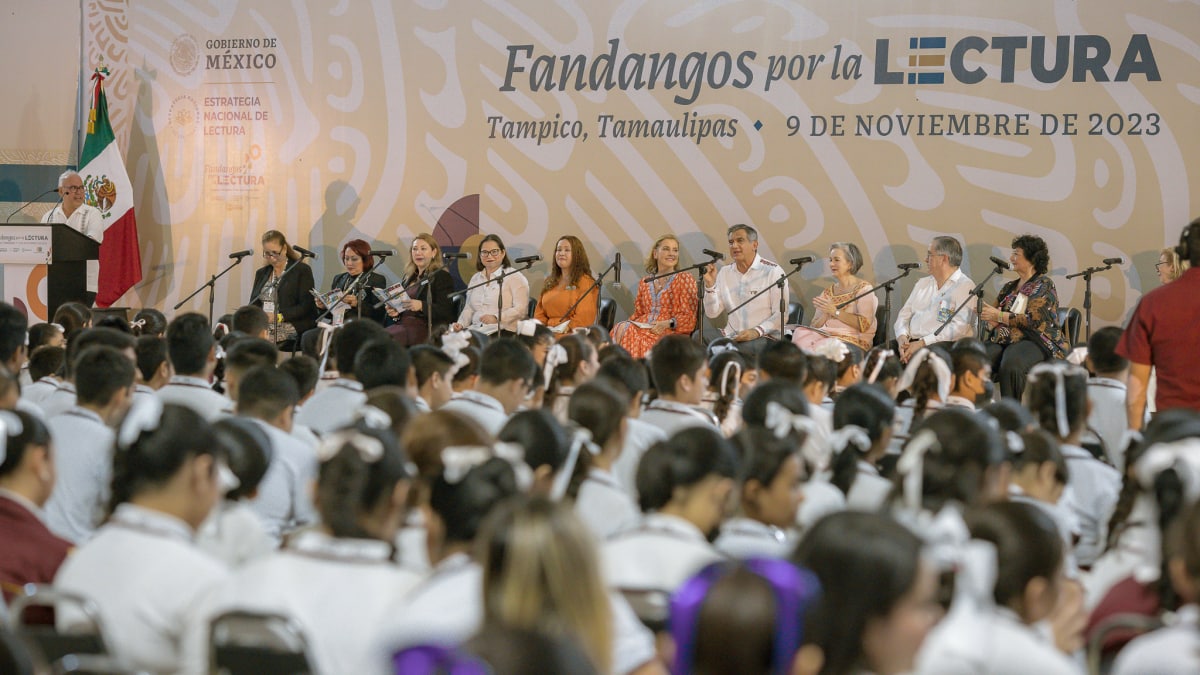 Con mucha alegría y entusiasmo, las y los estudiantes, directivos y personal docente de la Secundaria Técnica No. 19 «Natividad Garza Leal”, de Ciudad Madero, participaron junto al gobernador Américo Villarreal Anaya, la Presidenta del Sistema DIF Tamaulipas, y la escritora e investigadora Beatriz Gutiérrez Müller, en la edición número 23 de ‘Fandangos por la Lectura’, en la que se leyeron textos de poetas y escritoras contemporáneas.