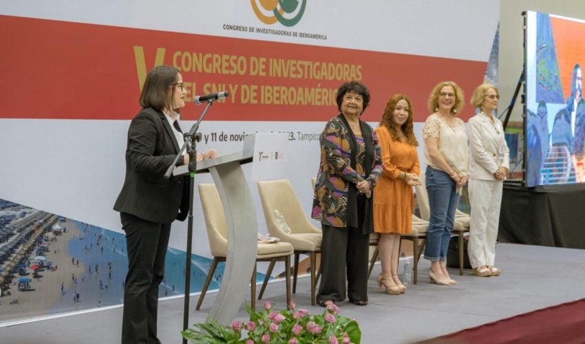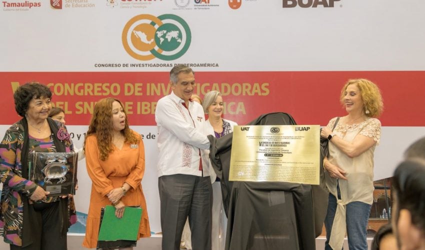 Ante el gobernador del Estado, Américo Villarreal Anaya, acompañado por la presidenta del Sistema DIF Tamaulipas, la Dra. María de Villarreal, y la Dra. Beatriz Gutiérrez Müller, la secretaria de Educación en la entidad, Lucía Aimé Castillo Pastor, inauguró en Tampico el V Congreso de Investigadoras del Sistema Nacional de Investigadores y de Iberoamérica, donde participarán del 9 al 11 de noviembre, más de 3 mil 500 asistentes de forma presencial y a distancia.