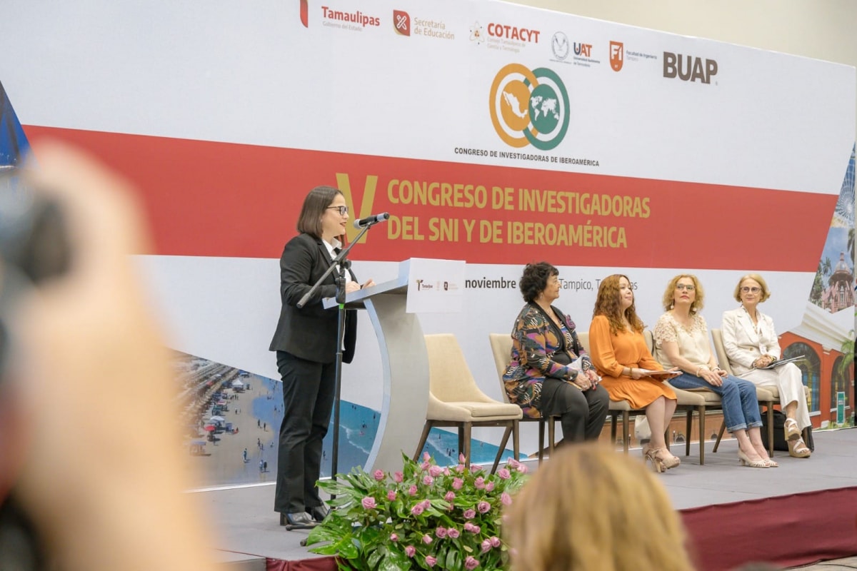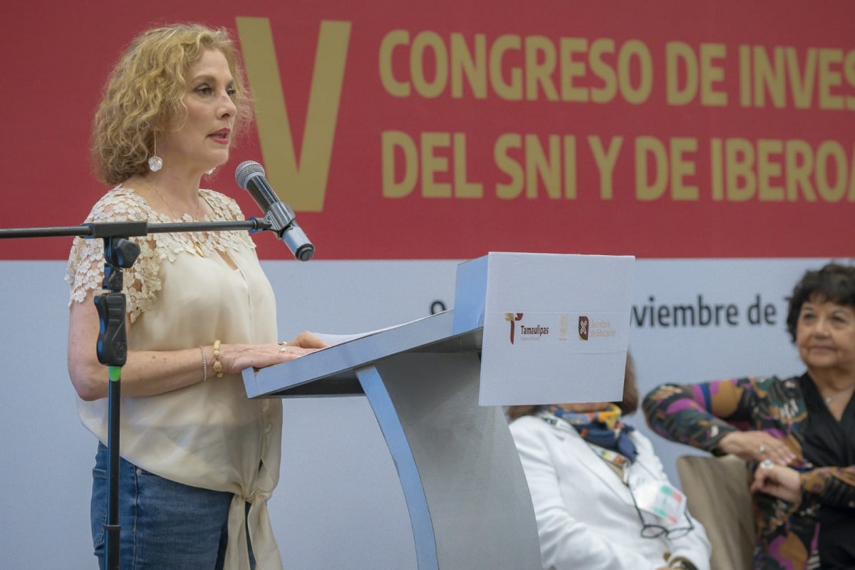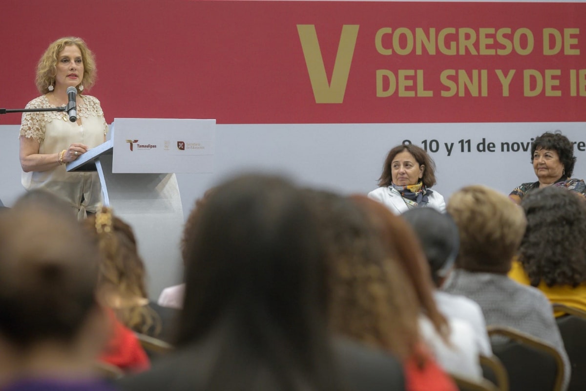Ante el gobernador del Estado, Américo Villarreal Anaya, acompañado por la presidenta del Sistema DIF Tamaulipas, la Dra. María de Villarreal, y la Dra. Beatriz Gutiérrez Müller, la secretaria de Educación en la entidad, Lucía Aimé Castillo Pastor, inauguró en Tampico el V Congreso de Investigadoras del Sistema Nacional de Investigadores y de Iberoamérica, donde participarán del 9 al 11 de noviembre, más de 3 mil 500 asistentes de forma presencial y a distancia.