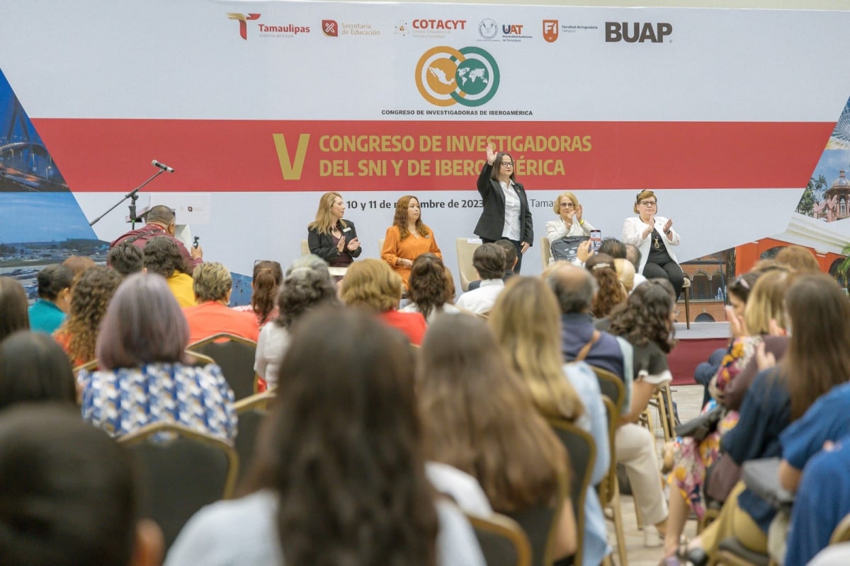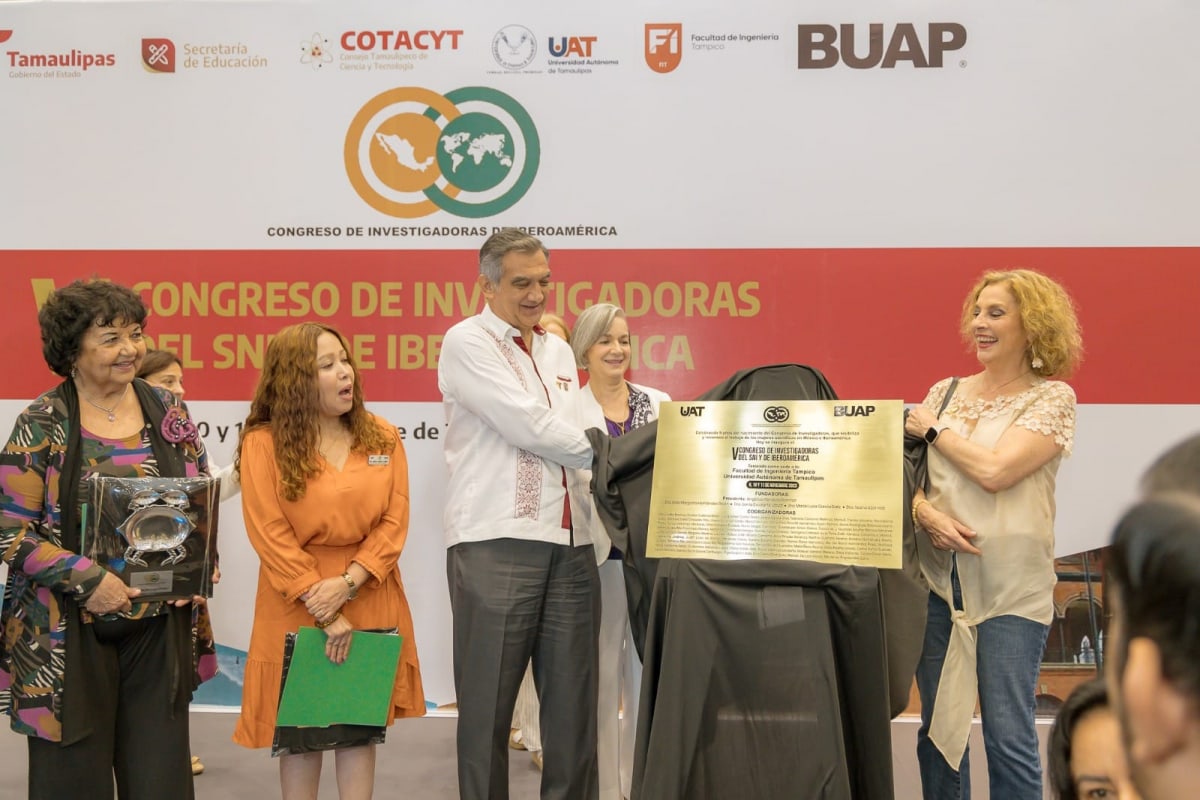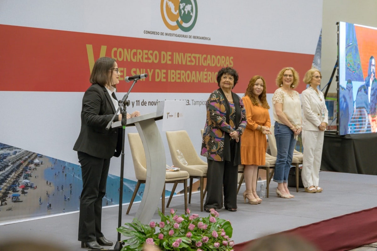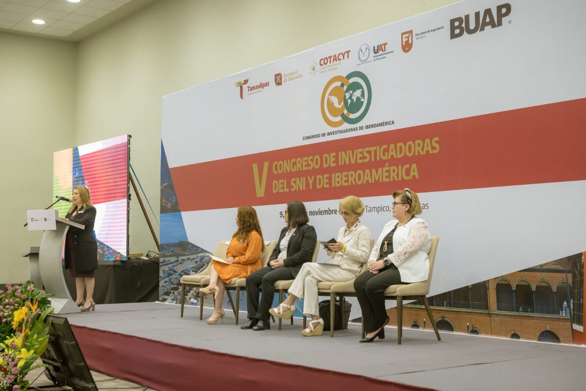 Ante el gobernador del Estado, Américo Villarreal Anaya, acompañado por la presidenta del Sistema DIF Tamaulipas, la Dra. María de Villarreal, y la Dra. Beatriz Gutiérrez Müller, la secretaria de Educación en la entidad, Lucía Aimé Castillo Pastor, inauguró en Tampico el V Congreso de Investigadoras del Sistema Nacional de Investigadores y de Iberoamérica, donde participarán del 9 al 11 de noviembre, más de 3 mil 500 asistentes de forma presencial y a distancia.