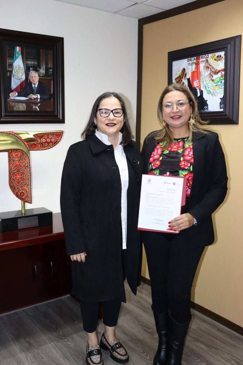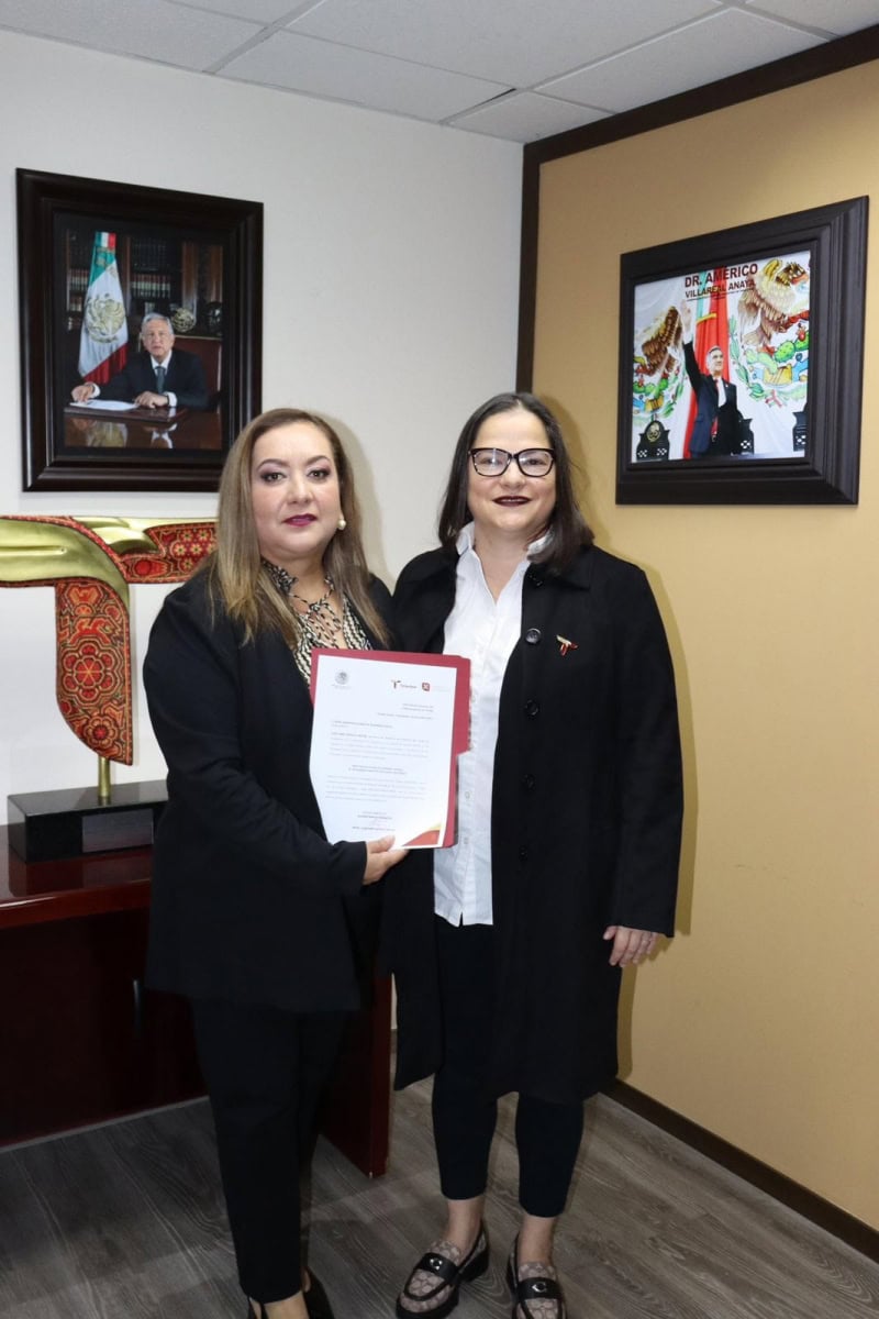 Lucía Aimé Castillo Pastor, hizo entrega del nombramiento a la Dra. Patricia Nalleli De la Fuente Rodríguez, como directora de la Escuela. Normal “Lic. J. Guadalupe Mainero”, ubicada en la ciudad de Matamoros, Tamaulipas.