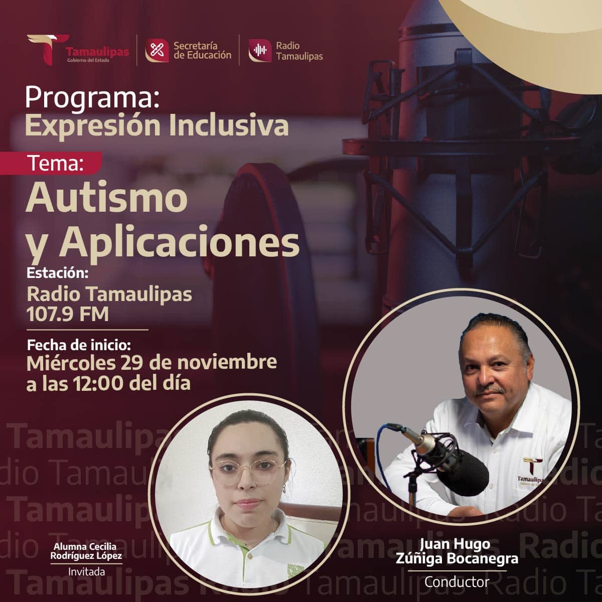 🎙🎤 Hoy miércoles 29 de noviembre, invitamos a sintonizar el Programa “Expresión Inclusiva”, a las 🕓 12:00 hrs. por Radio Tamaulipas.
