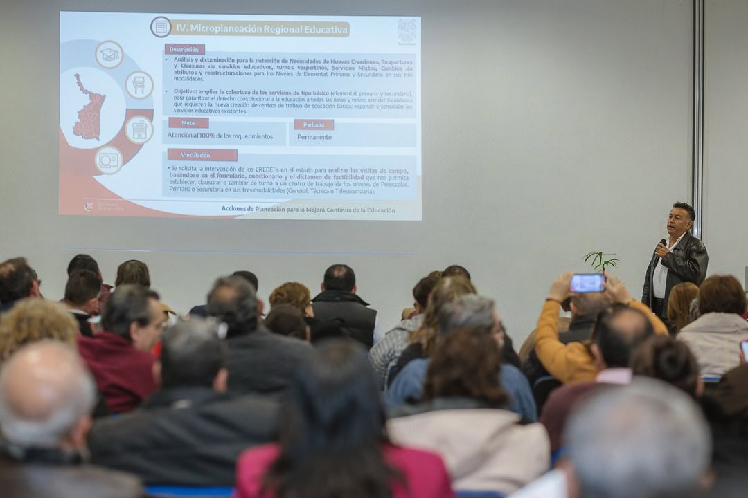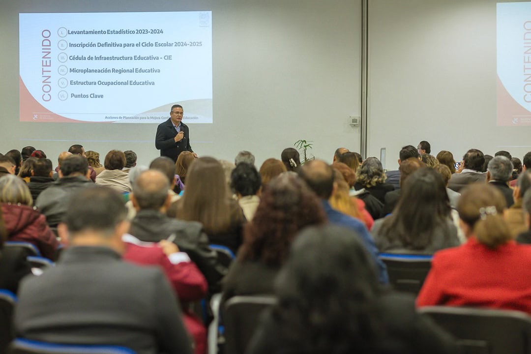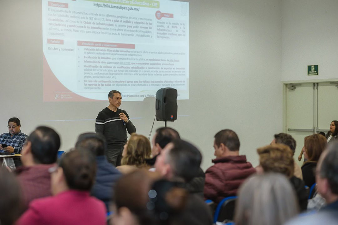 Entre los temas que se abordaron están las acciones de planeación para la mejora continua en la educación, levantamiento estadístico 2023-2024, inscripción definitiva para el ciclo escolar 2024-2025, cédula de infraestructura educativa, micro planeación regional educativa, estructura de ocupación, plantillas de personal, control escolar y seguimiento a escuelas particulares de Educación Básica y Tamaulipas Aprende.