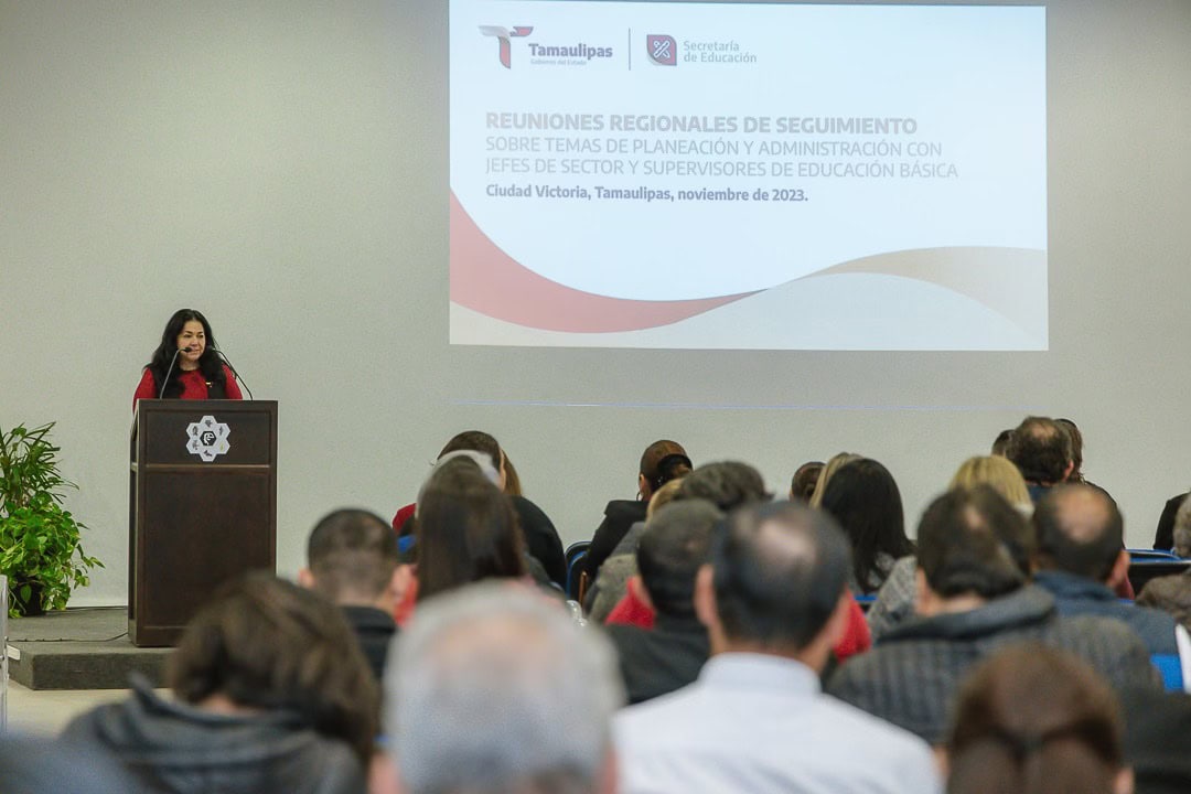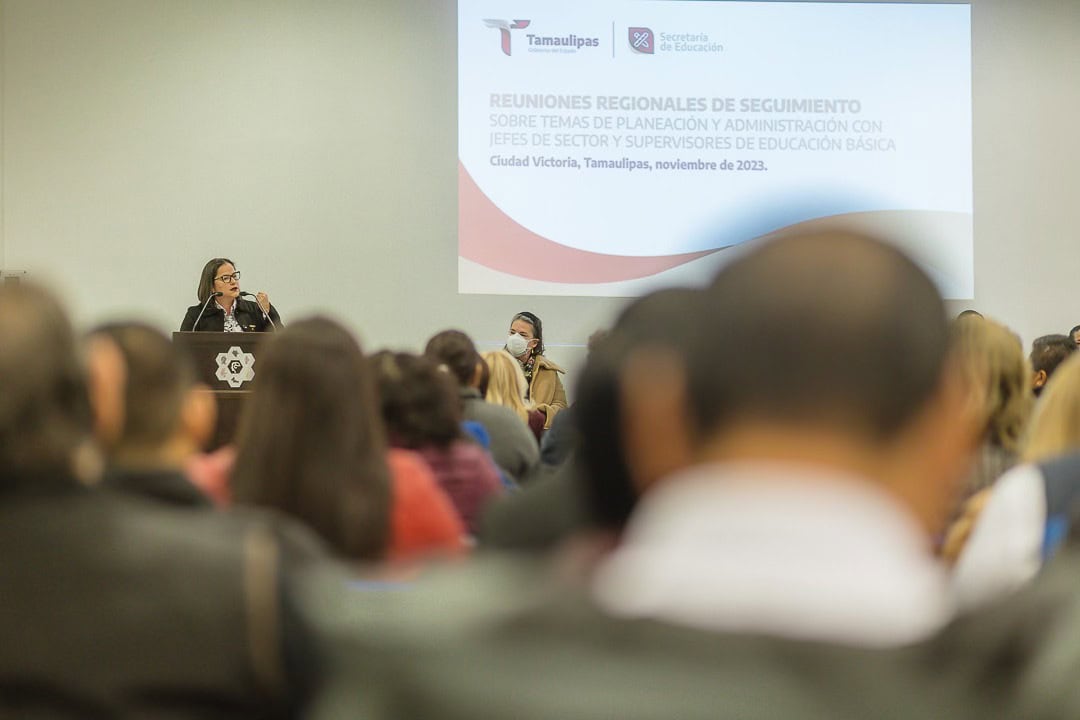 Reafirmando el compromiso del gobernador de Tamaulipas, Américo Villarreal Anaya, con una educación humanista y de excelencia, se llevó a cabo la Reunión Regional de Seguimiento Sobre Temas de Planeación y Administración con Jefes de Sector y Supervisores de Educación Básica de la zona centro del Estado, presidida por la secretaria de Educación de Tamaulipas, Lucía Aimé Castillo Pastor.