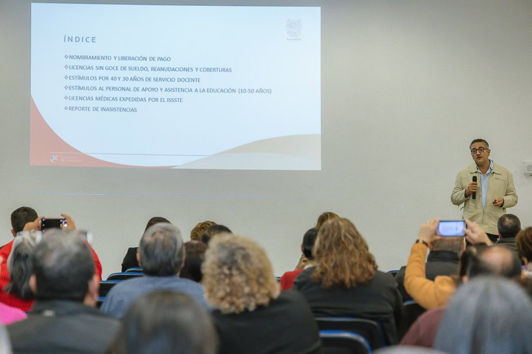 También se dieron a conocer los procedimientos administrativos que favorecen el orden y cumplimiento de la Ley General del Sistema para la Carrera de las Maestras y los Maestros, como nuevos ingresos, horas adicionales, promoción vertical, cambios de centro de trabajo, convocatoria intrazona por problemas de salud o inseguridad, procedimiento para la autorización de bajas y licencias para el personal, hoja única de servicios, estímulos al personal, reportes de inasistencias, observaciones derivadas de auditoría, entre otros procesos.