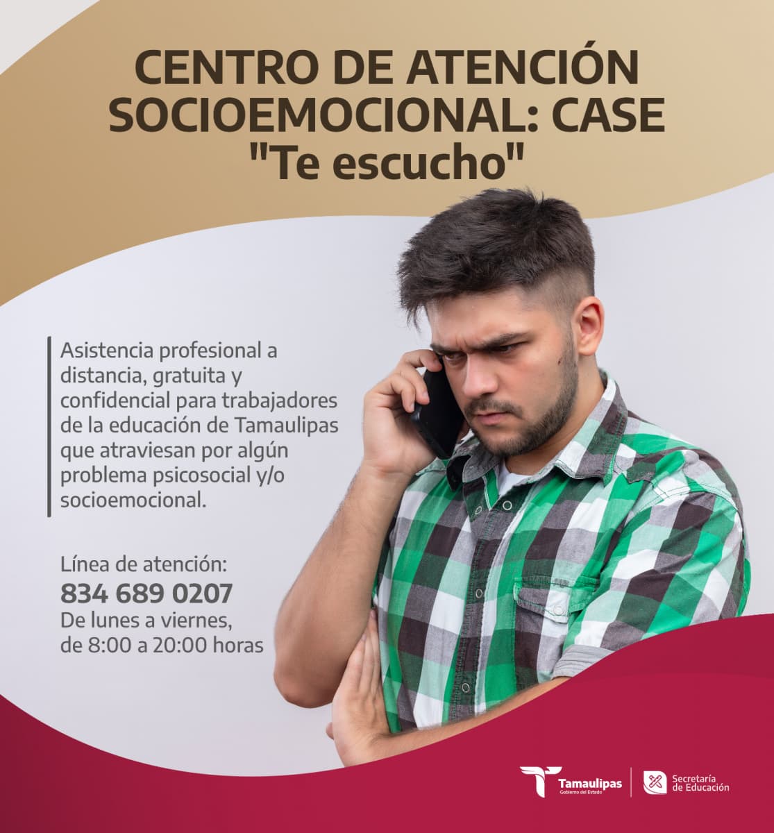 Se pone a disposición de los trabajadores de la educación de Tamaulipas el Centro de Atención Socioemocional: CASE «Te escucho», que brinda servicios a distancia en caso de problemas emocionales y psicosociales.