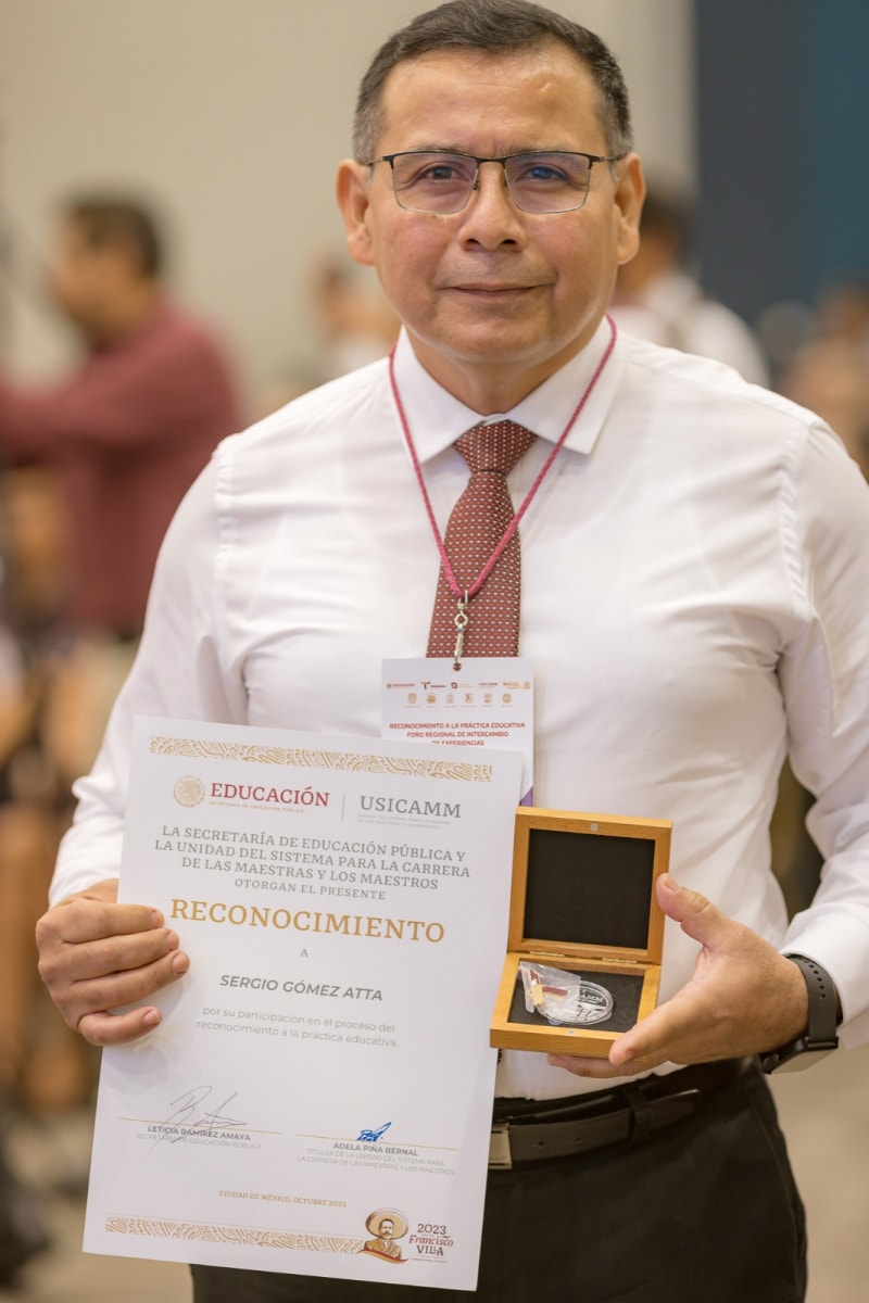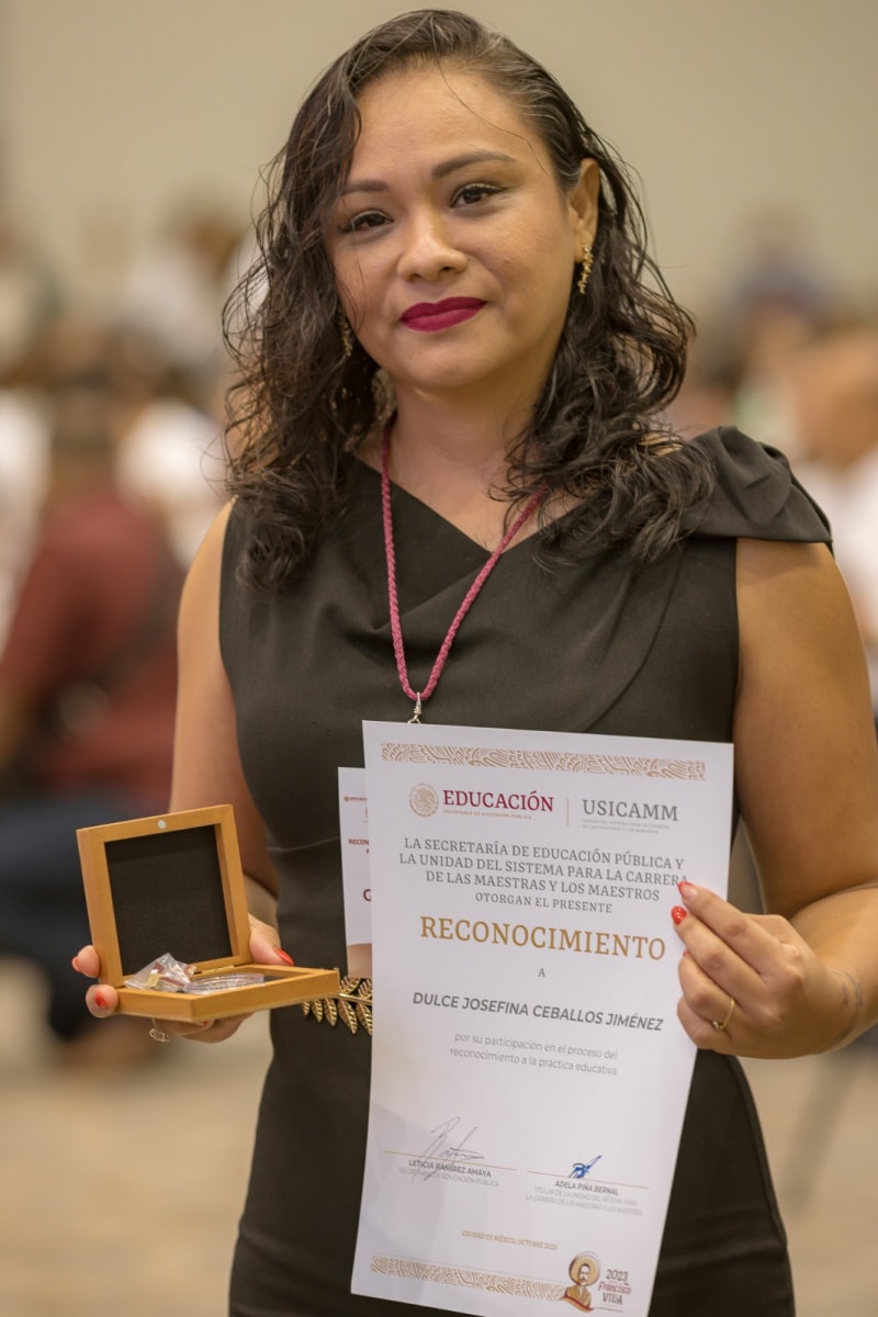 Durante la celebración de este foro, se hizo entrega de medallas y reconocimientos a maestras y maestros galardonados por su destacada participación en la práctica educativa.
