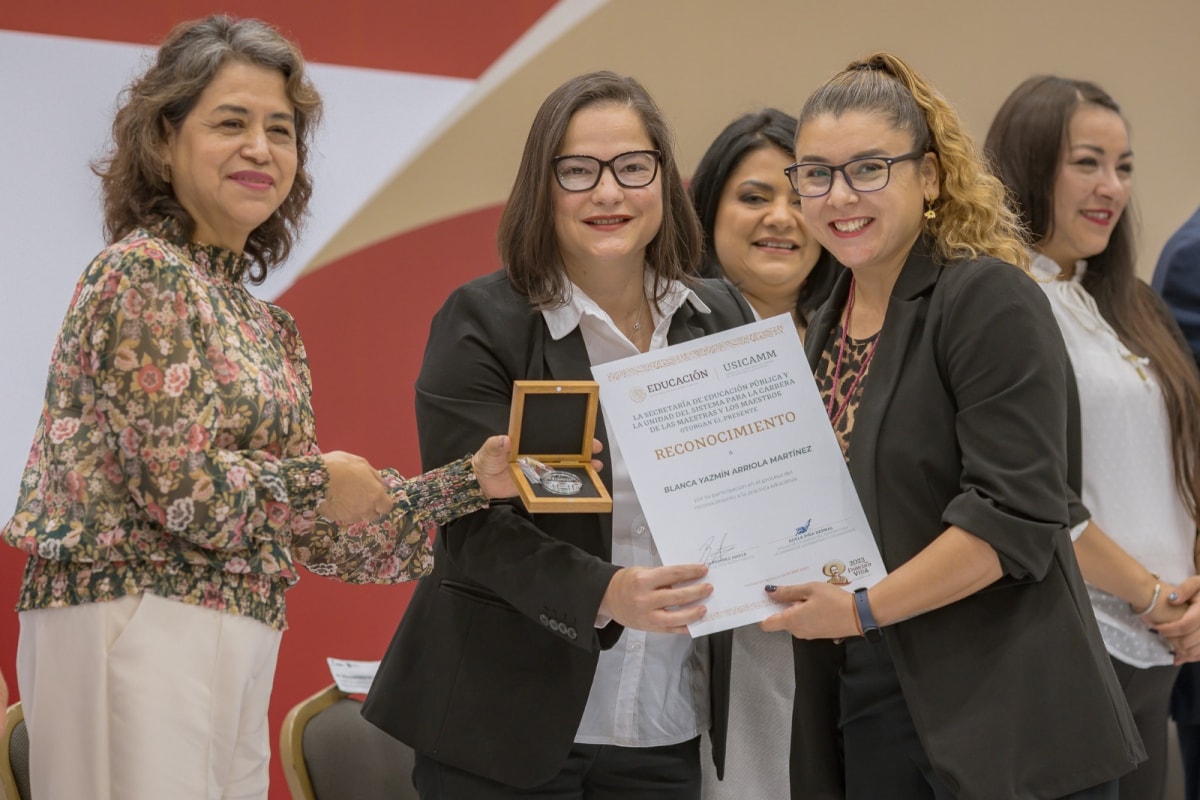En representación del gobernador del Estado, Américo Villarreal Anaya, la secretaria de Educación en el Estado, junto a la Titular de la Unidad del Sistema para la Carrera de las Maestras y los Maestros, Mtra. Adela Piña Bernal, presidieron la ceremonia de inauguración y la entrega de las medallas y reconocimientos.