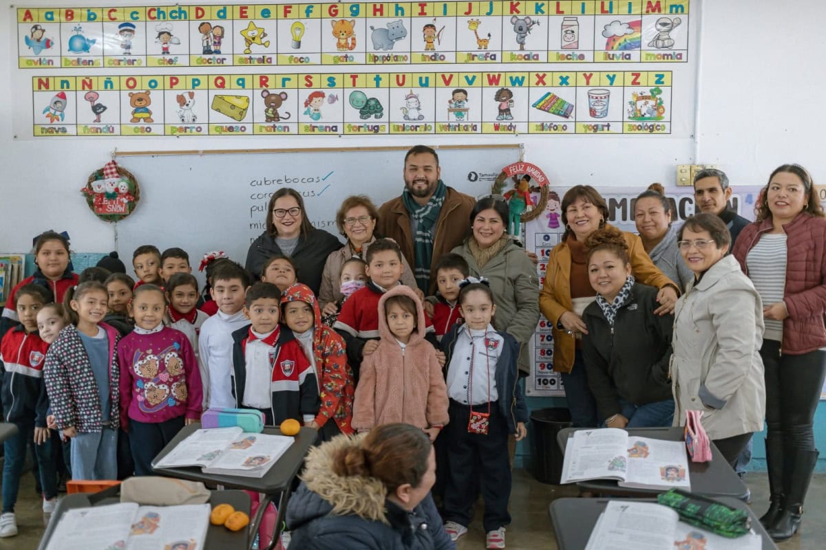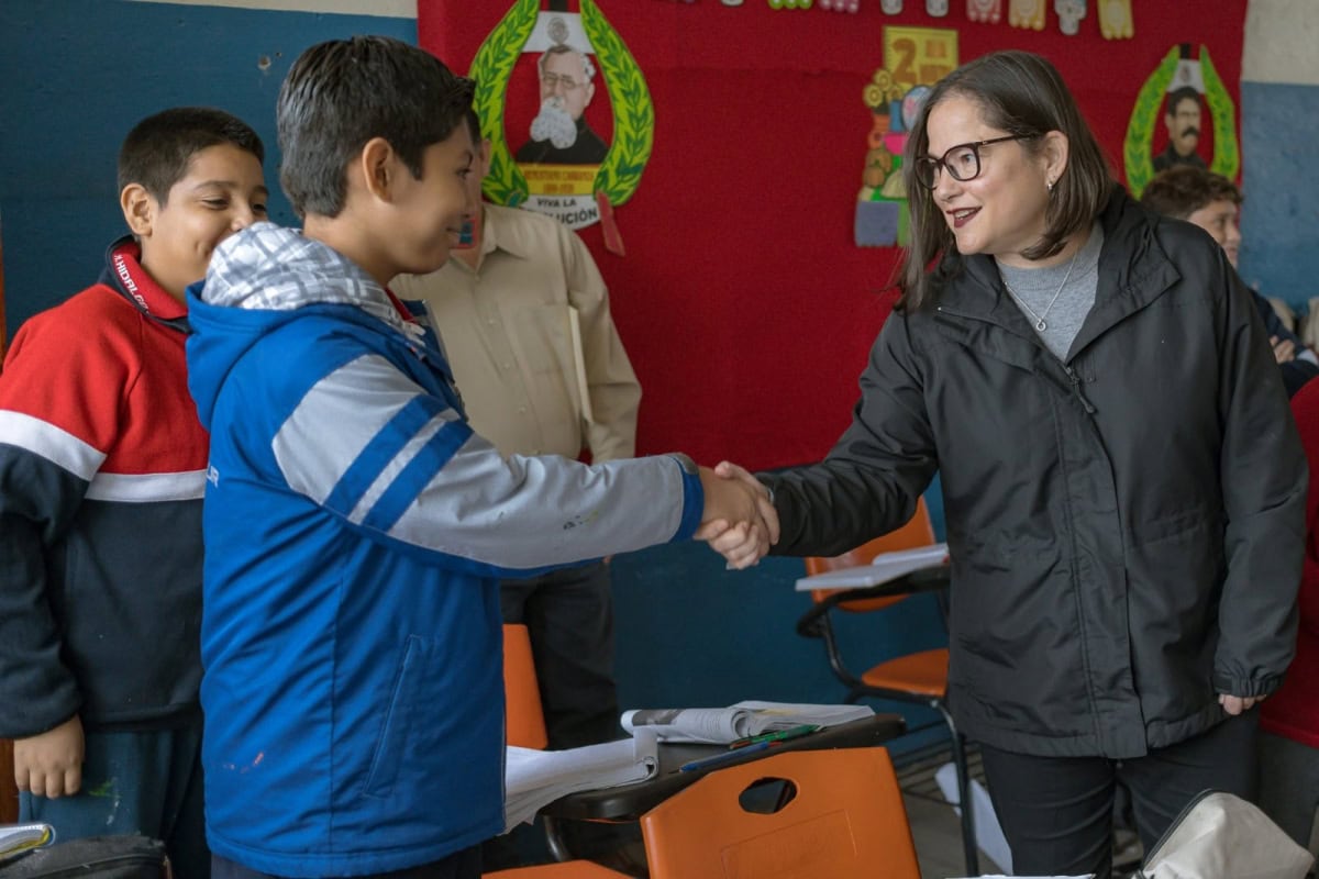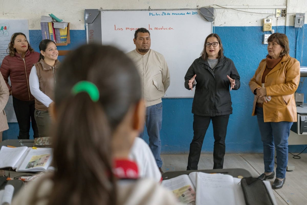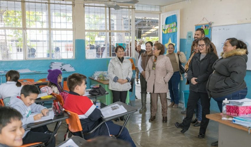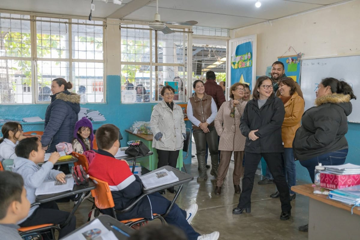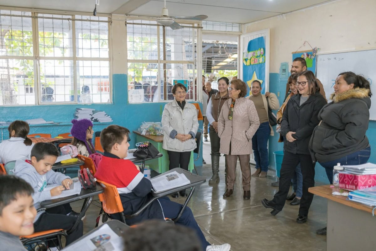 La titular de la SET, tuvo la oportunidad de visitar algunos salones de clases, donde constató el trabajo de las y los maestros de educación básica, además de platicar con las niñas y los niños sobre las diferentes actividades que realizan en su escuela.