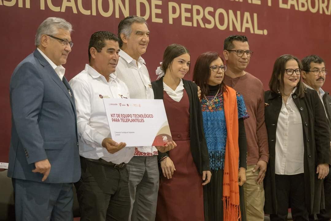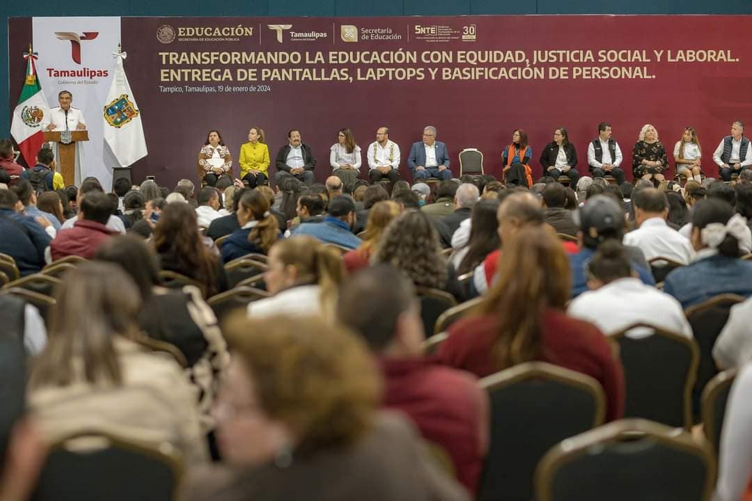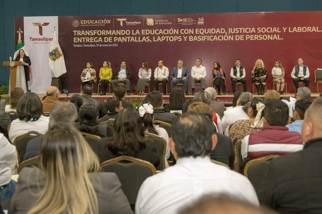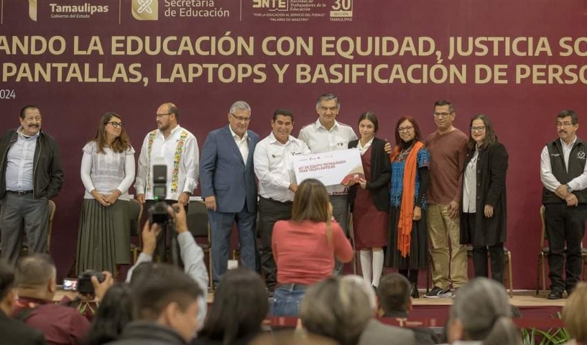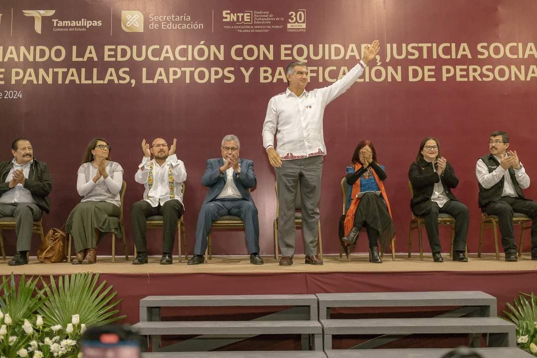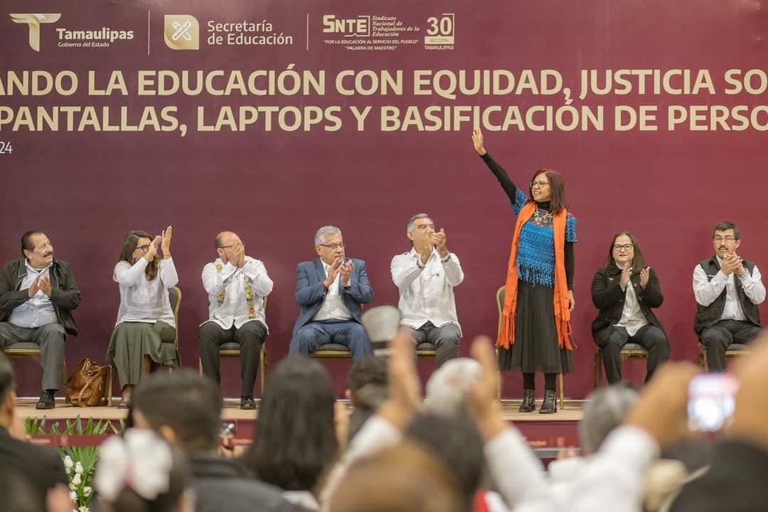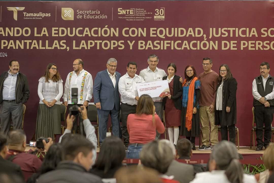 Estuvieron presentes también la secretaria de Educación de Tamaulipas, Lucía Aimé Castillo Pastor, el secretario general de la Sección 30 del SNTE, Arnulfo Rodríguez Treviño, así como autoridades federales, estatales y locales.