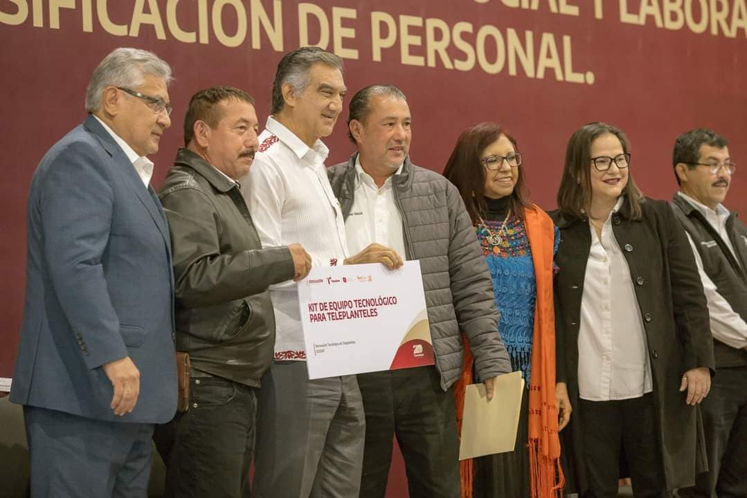 Con voluntad, trabajo, compromiso y humanismo, el gobernador Américo Villarreal Anaya, junto a la secretaria de Educación Pública, Leticia Ramírez Amaya, y el secretario general del Sindicato Nacional de Trabajadores de la Educación, Alfonso Cepeda Salas, entregaron a maestros de Tamaulipas 3 mil 215 nombramientos de basificación a personal docente y administrativo de la Secretaría de Educación del Estado, además de equipo tecnológico por un monto de más de 19 millones de pesos para escuelas Telesecundarias.