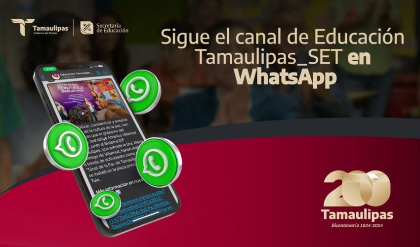 Sigue el canal de WhatsApp de la Secretaría de Educación de Tamaulipas, en Educación Tamaulipas_SET: