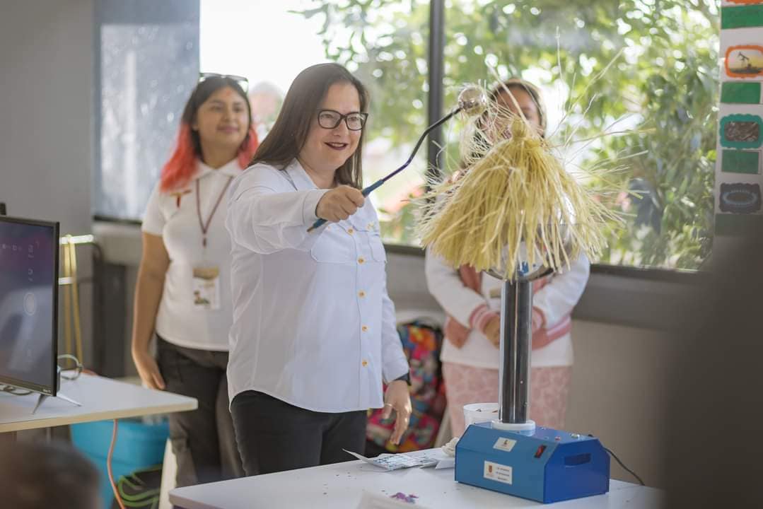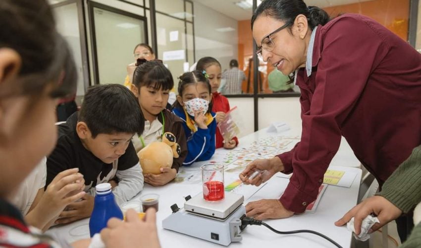 La secretaria de Educación en el Estado, Lucía Aimé Castillo Pastor, acompañó a decenas de niñas y niños de escuelas primarias, en la realización de actividades didácticas de las áreas STEAM (ciencia, tecnología, ingeniería, artes y matemáticas), así como de medio ambiente, deportivas y culturales, diseñadas especialmente para las y los estudiantes, vinculadas a los campos formativos “De lo humano y lo comunitario” y “Saberes y pensamiento científico”, que promueve la Nueva Escuela Mexicana.