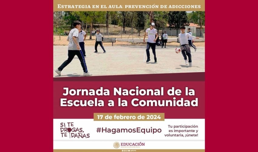 Hagamos equipo y participa en la «Jornada Nacional de la Escuela a la comunidad», este 17 de febrero, de la «Estrategia en el aula: Prevención de adicciones», con actividades físicas, educativas y culturales.