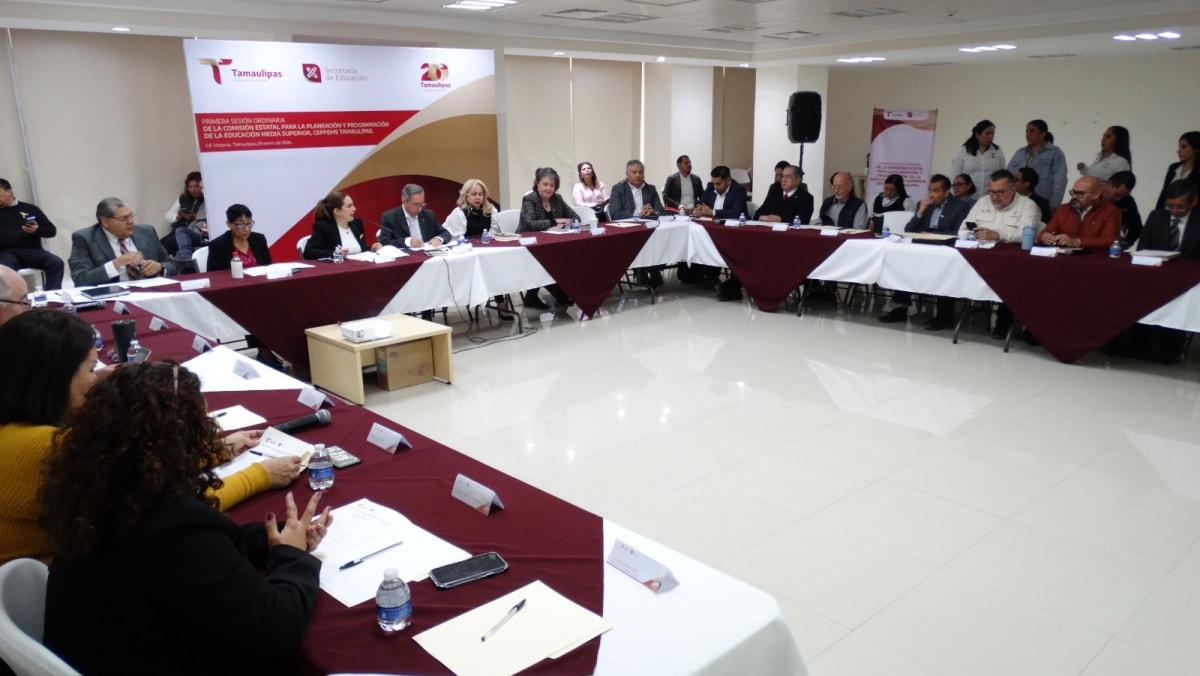 Dando seguimiento a los planes y programas impulsados por la administración del gobernador del Estado, Américo Villarreal Anaya, que fortalecen los procesos educativos que se cumplen en las instituciones de Tamaulipas, la Secretaría de Educación de Tamaulipas (SET) en la entidad llevó a cabo la Primera Reunión de la Comisión Estatal para la Planeación y Programación de la Educación Media Superior (CEPPEMS).