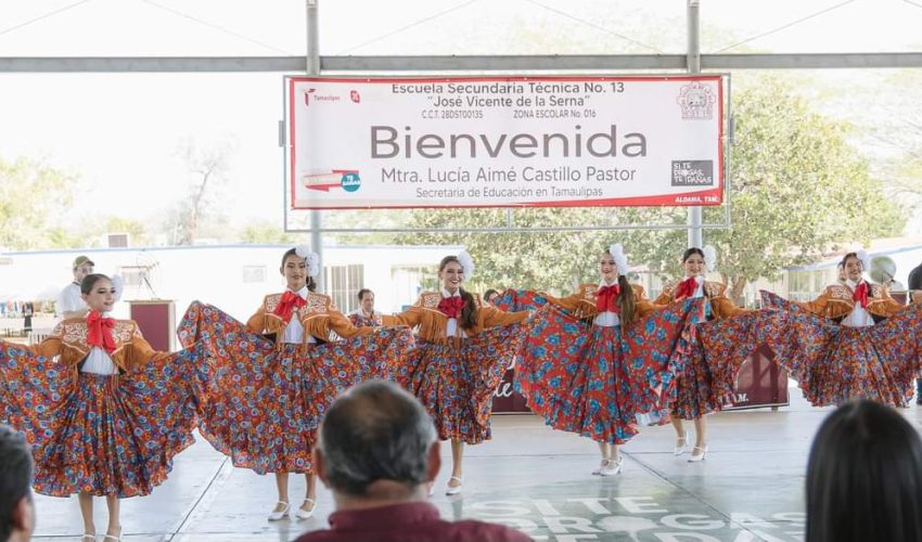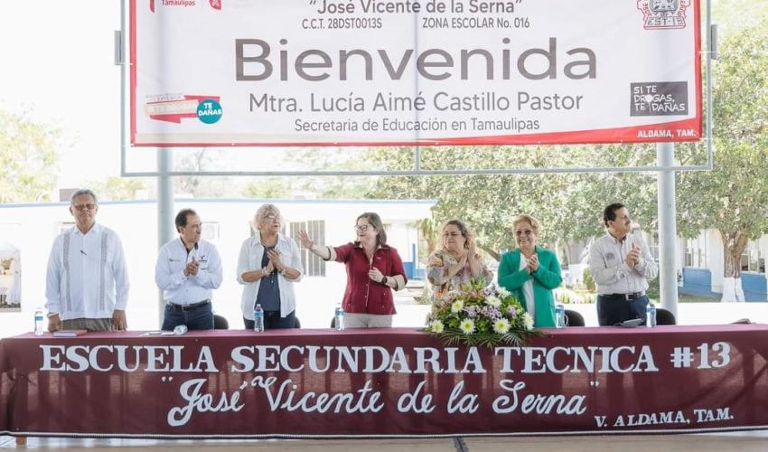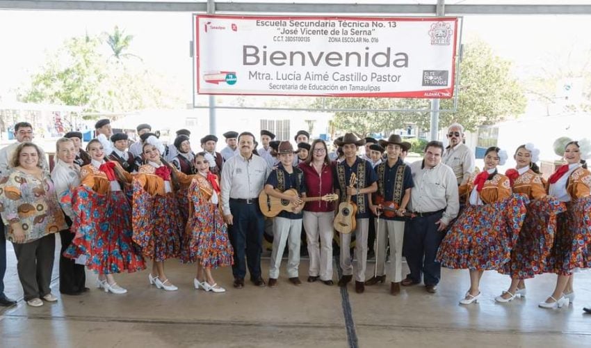 En permanente trabajo recorriendo las escuelas de Tamaulipas, con el objetivo de promover espacios de diálogo y acuerdos con el personal del sector educativo, estudiantes, madres y padres de familia, la secretaria de Educación en el Estado, Lucía Aimé Castillo Pastor, visitó la Escuela Secundaria Técnica No. 13 “José Vicente de la Serna” en el municipio de Aldama, donde acompañó a la comunidad educativa en sus actividades artísticas y musicales.