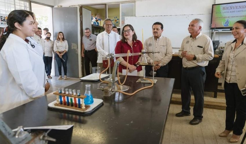 La secretaria de Educación en el Estado, Lucía Aimé Castillo Pastor, visitó la Escuela Secundaria Técnica No. 13 “José Vicente de la Serna” en Aldama.