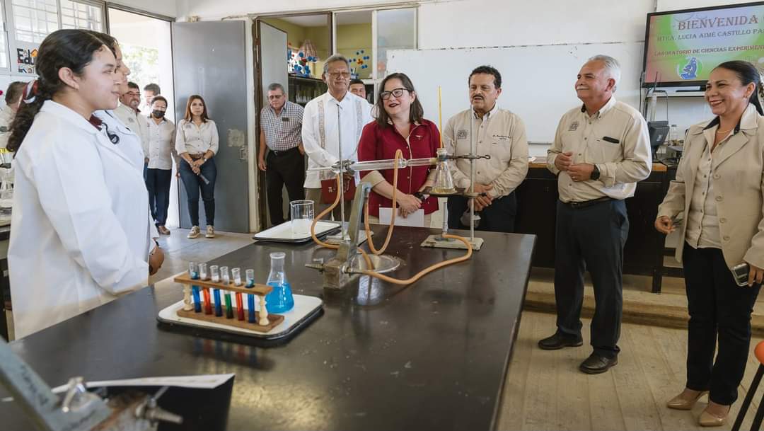 La secretaria de Educación en el Estado, Lucía Aimé Castillo Pastor, visitó la Escuela Secundaria Técnica No. 13 “José Vicente de la Serna” en Aldama.