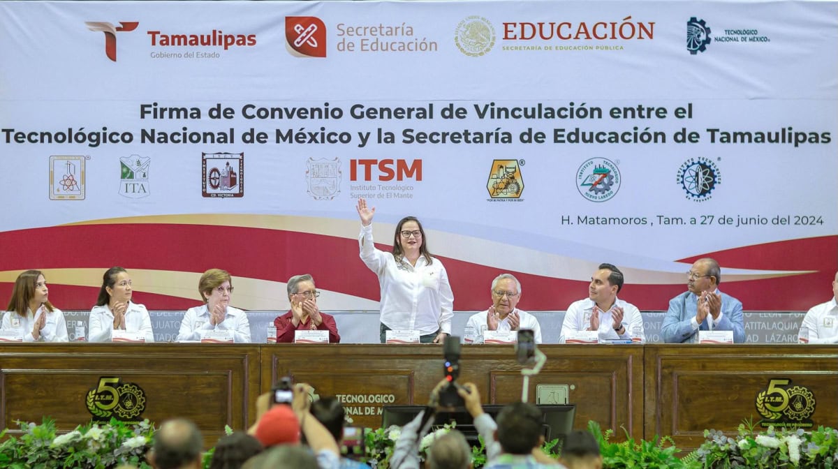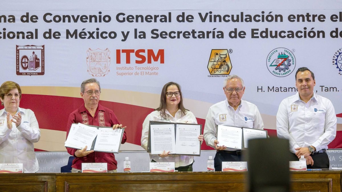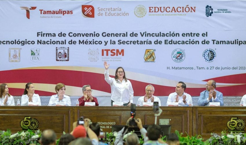 La firma de este compromiso se realizó en las instalaciones del TECNM – Matamoros, acompañados de decenas de estudiantes del plantel, así como de autoridades educativas federales, estatales y municipales.