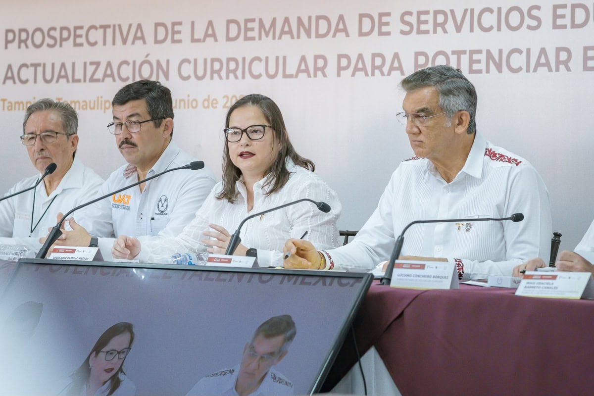 Presidida por el gobernador del Estado, Américo Villarreal Anaya, la secretaria de Educación de Tamaulipas, Lucía Aimé Castillo Pastor, asistió este lunes a la Reunión Regional de Autoridades e Instituciones de Educación Superior, dirigida también por el subsecretario de Educación Media Superior y Superior en México, Luciano Concheiro Borquez y el rector de la Universidad Autónoma de Tamaulipas, Dámaso Leonardo Anaya Alvarado.